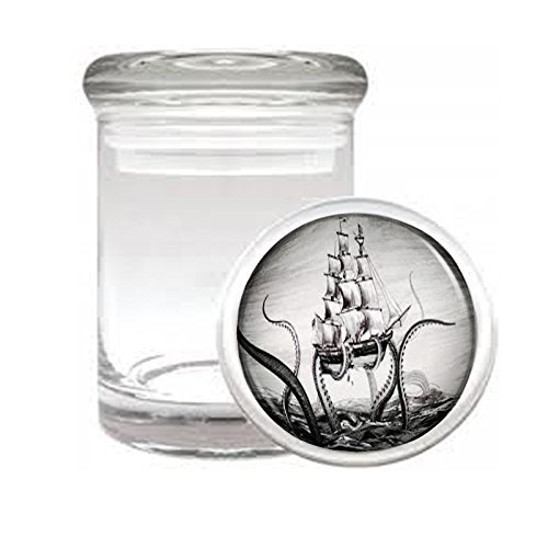 Gigantic Octopus Kraken D8 Medical Glass Jar 3" X 2" Herb & Spices Scary Sea Mon