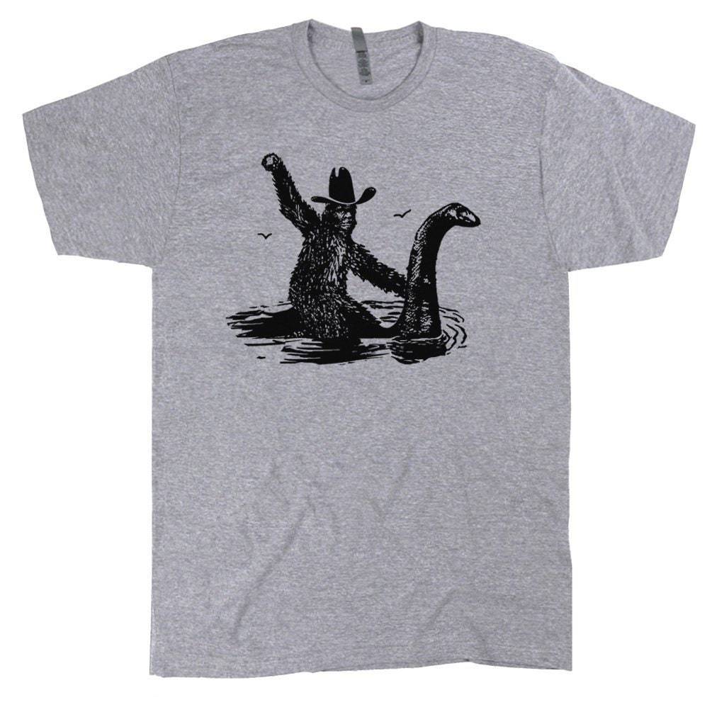 Funny Bigfoot T Shirt Sasquatch Riding Loch Ness Monster Cool Cryptid Graphic