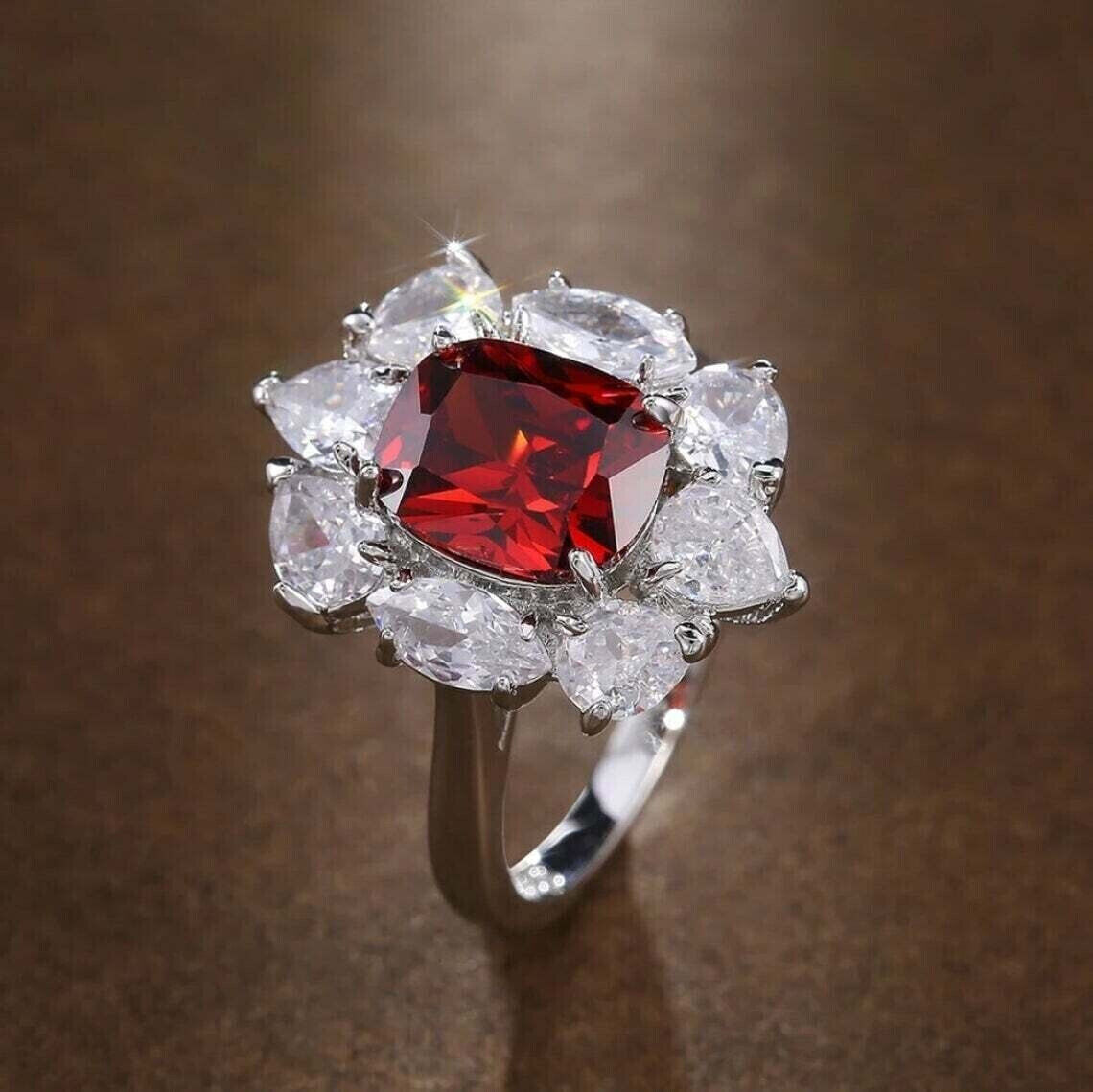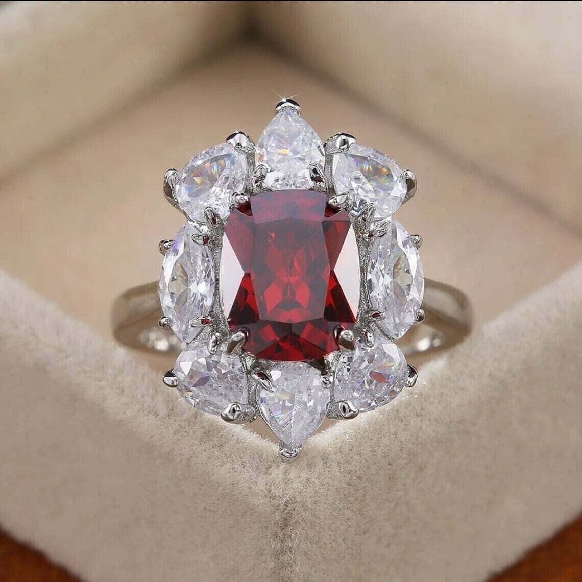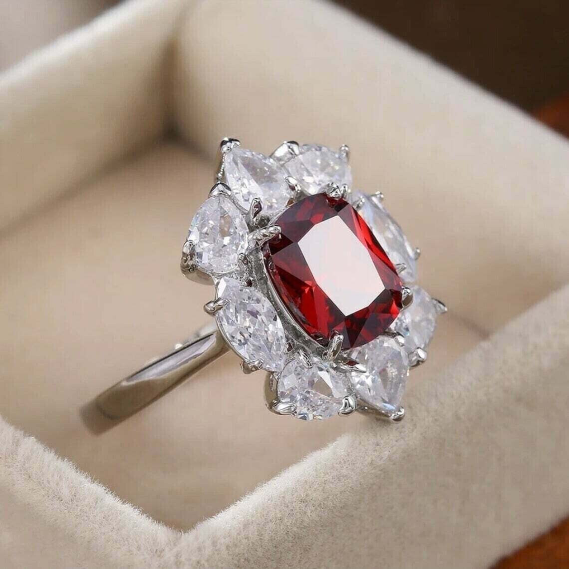 5Ct Oval Cut CZ Garnet Fancy Halo Engagement and 50 similar items