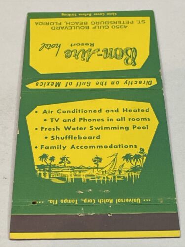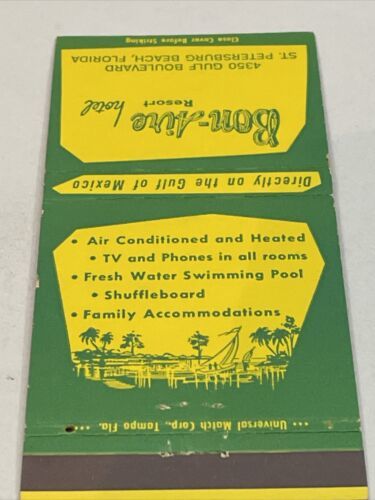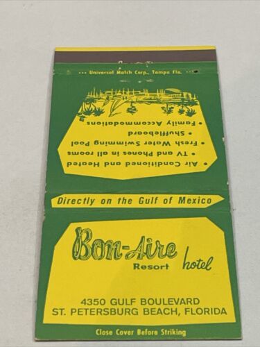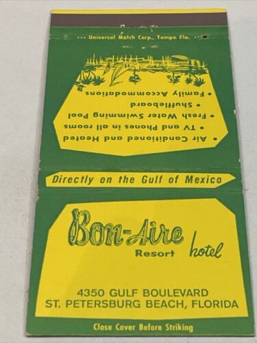 Vintage Matchbook Cover Bon-Aire Resort Hotel ST.Petersburg Beach Florida. gmg