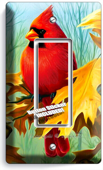 CARDINAL BIRD OAK TREE LEAVES ACORNS 1 GFI LIGHT SWITCH WALL PLATE HD ROOM DECOR