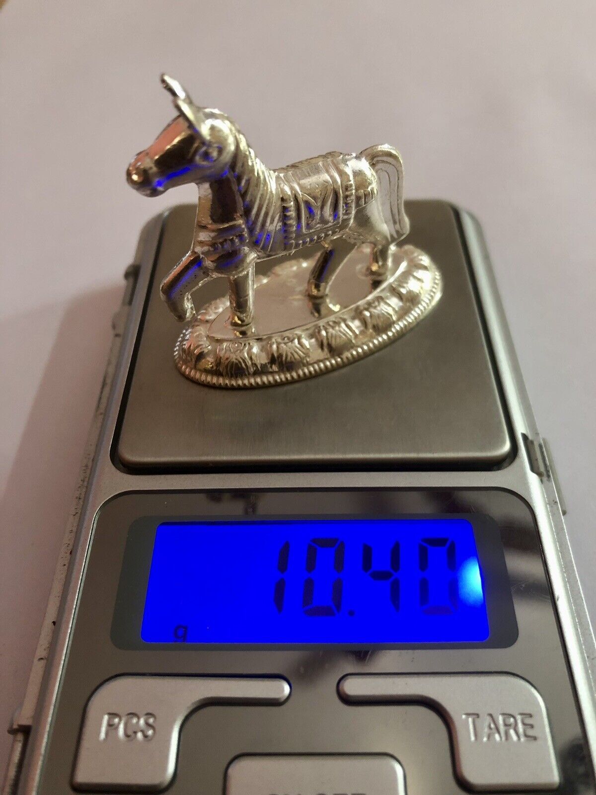 925 Sterling Silver Hindu Religious Horse Idol Statue 4.4 cm 10.4 gm Temple Pooja, Vehicle Vahana of Shani Dev, Silver collectibles, Ghoda