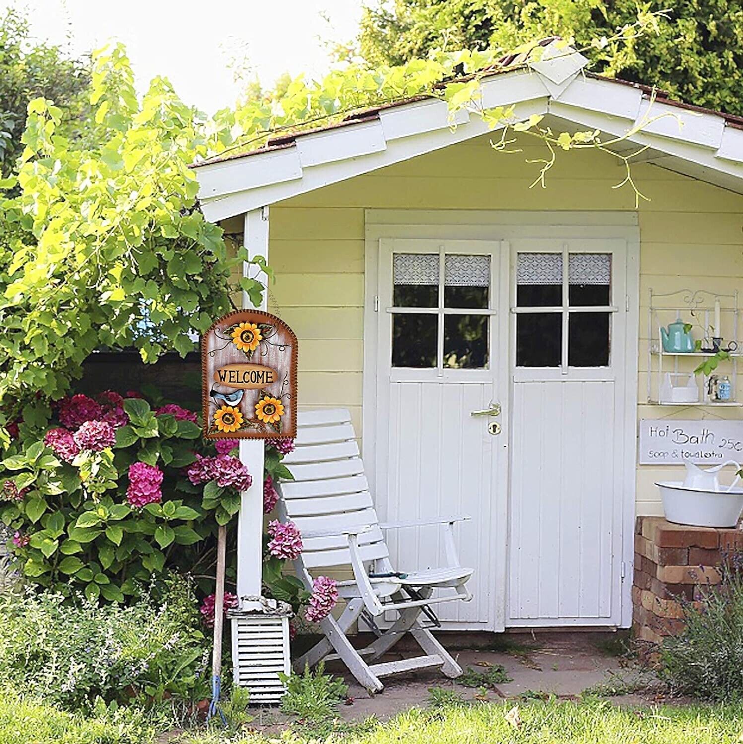 ? Sunflower Bird Garden Welcome Sign - Decorative garden sign is decorated with a sunflowers and bird decor on it and with spring around on the plaque. Give your guests a warm welcome with "Welcome" word written.