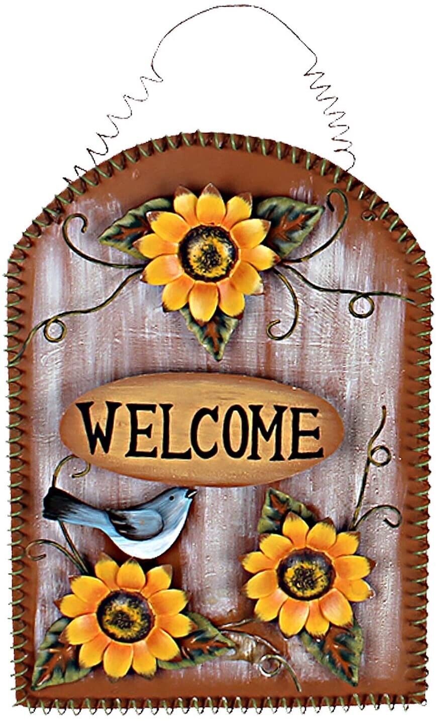 ? Welcome Sign Hanging Outdoor Indoor - Metal sunflowers welcome sign is made of durable metal material. This rustic welcome hanging sign is hand painted deliberately in vintage finish, comes with a sturdy wire for easy to hang