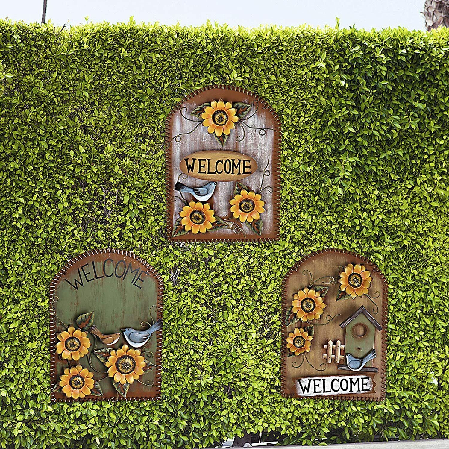 Sunflower Welcome Sign Bird Decor Rustic Metal Hanging Welcome Sign Plaque Decor
