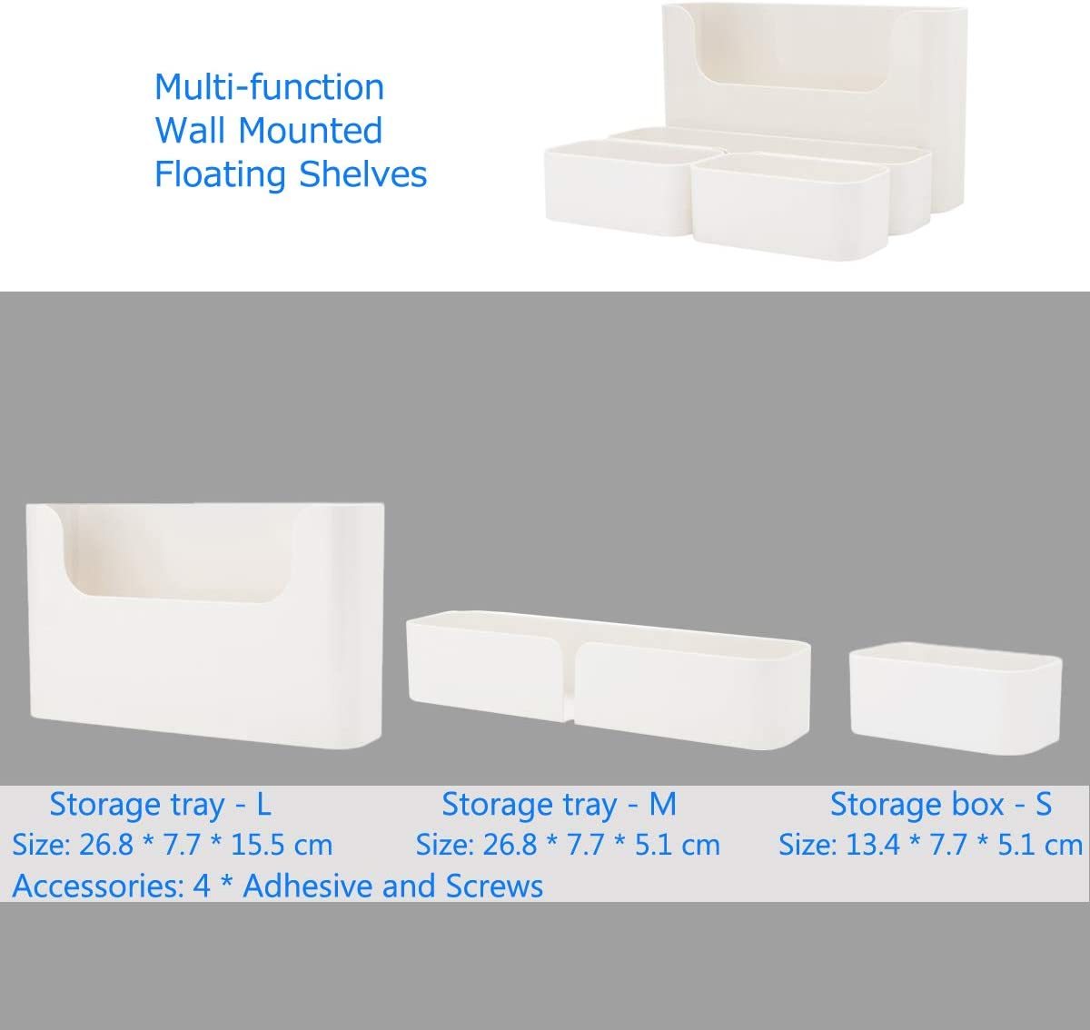 Brief Home Bathroom decor - This wall adhesive shelf can also be a stunning addition of your home, its simple yet attractive design matches perfectly any home style. Space Saver - Transforms the wasted space on the wall into a spacious storage area, this wall floating shelf helps you to keep everything neatly organized within arms reach. Easy to Install - Come with strong adhesive plates, easy and quick installation, damage-free to your smooth wall. It also comes with screws, can install on uneven wall. Material - Made from High Impact ABS that are durable and can withstand 5 Lb. Multipurpose - Ideal for bathroom, kitchen, bedroom, power room, work great as a bathroom storage shelf, shower caddy, makeup vanity, kitchen organizer, display shelf.