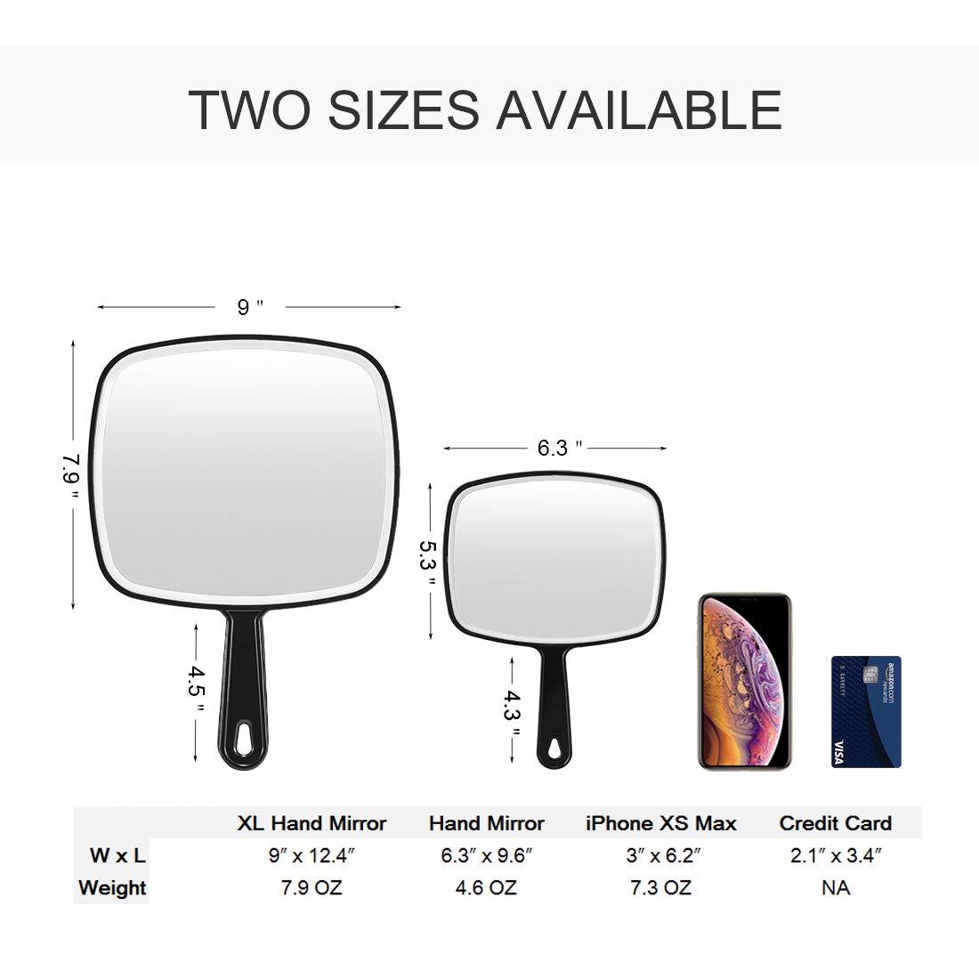 HD REGULAR MIRROR: Single-sided plain glass mirror, no magnification, high definition distortion-free reflection LARGE VIEWING: large viewing surface 2-WAY DESIGN: Mirror can be hung up or handheld, it's excellent for shaving BLACK STREAM SHAPE: Classic black color and modern rounded rectangle shape PERKS/FREEBIES: Receive a complimentary classic comb for every purchase 4 OPTIONS: XL (pack of 1, pack of 3); M (pack of 1, pack of 3);