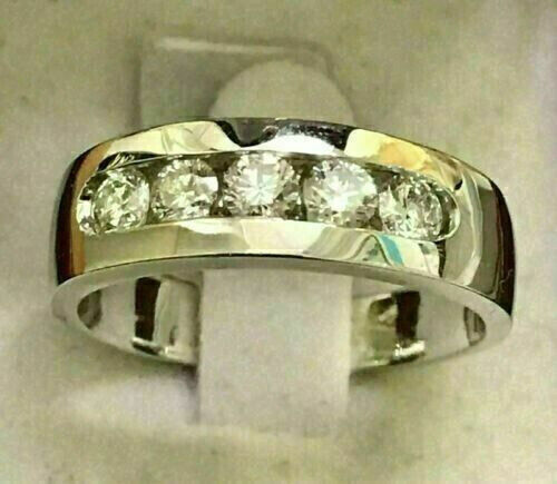 CZ Moissanite 3Ct Round Cut Engagement 5 Stone Band Ring 14K White Gold Plated