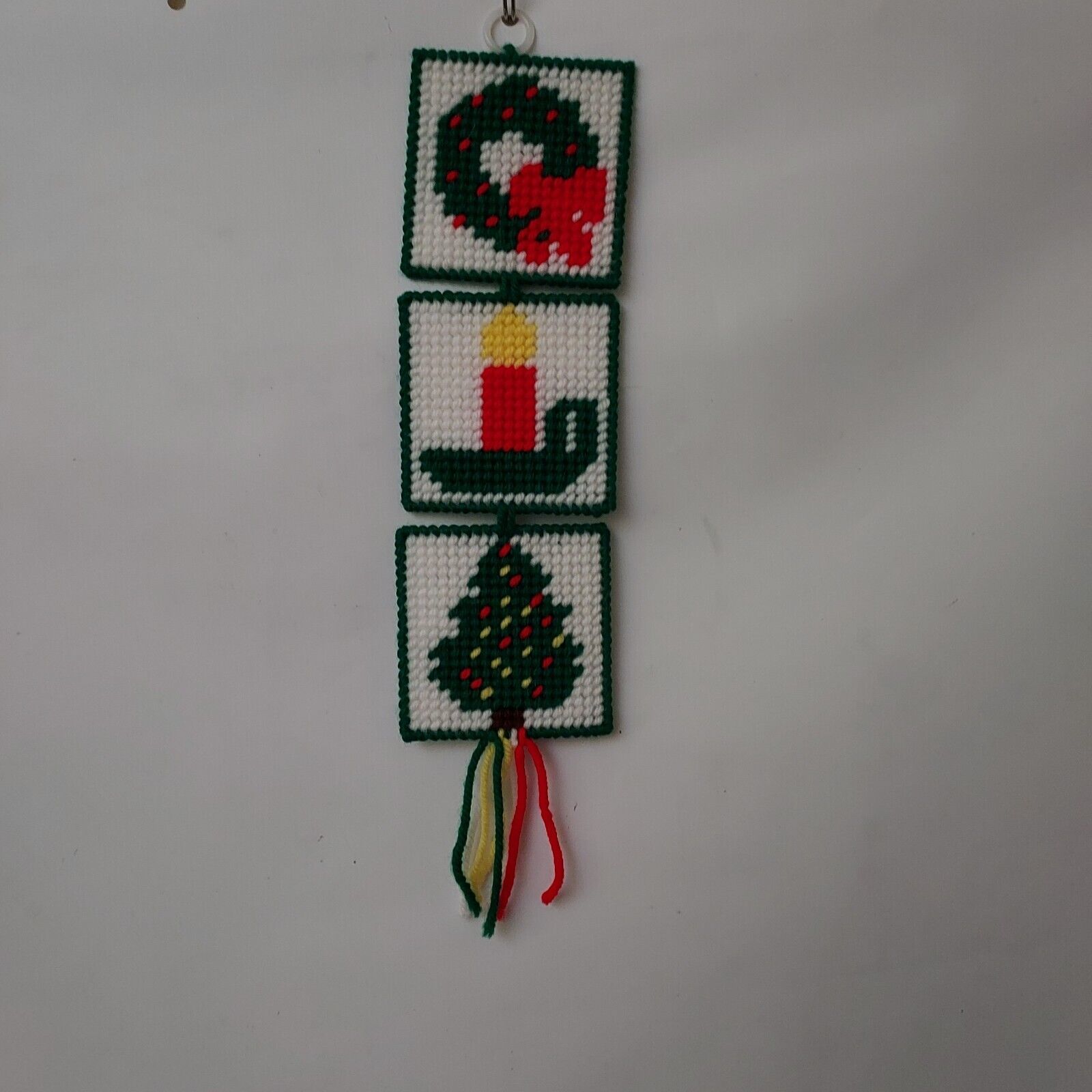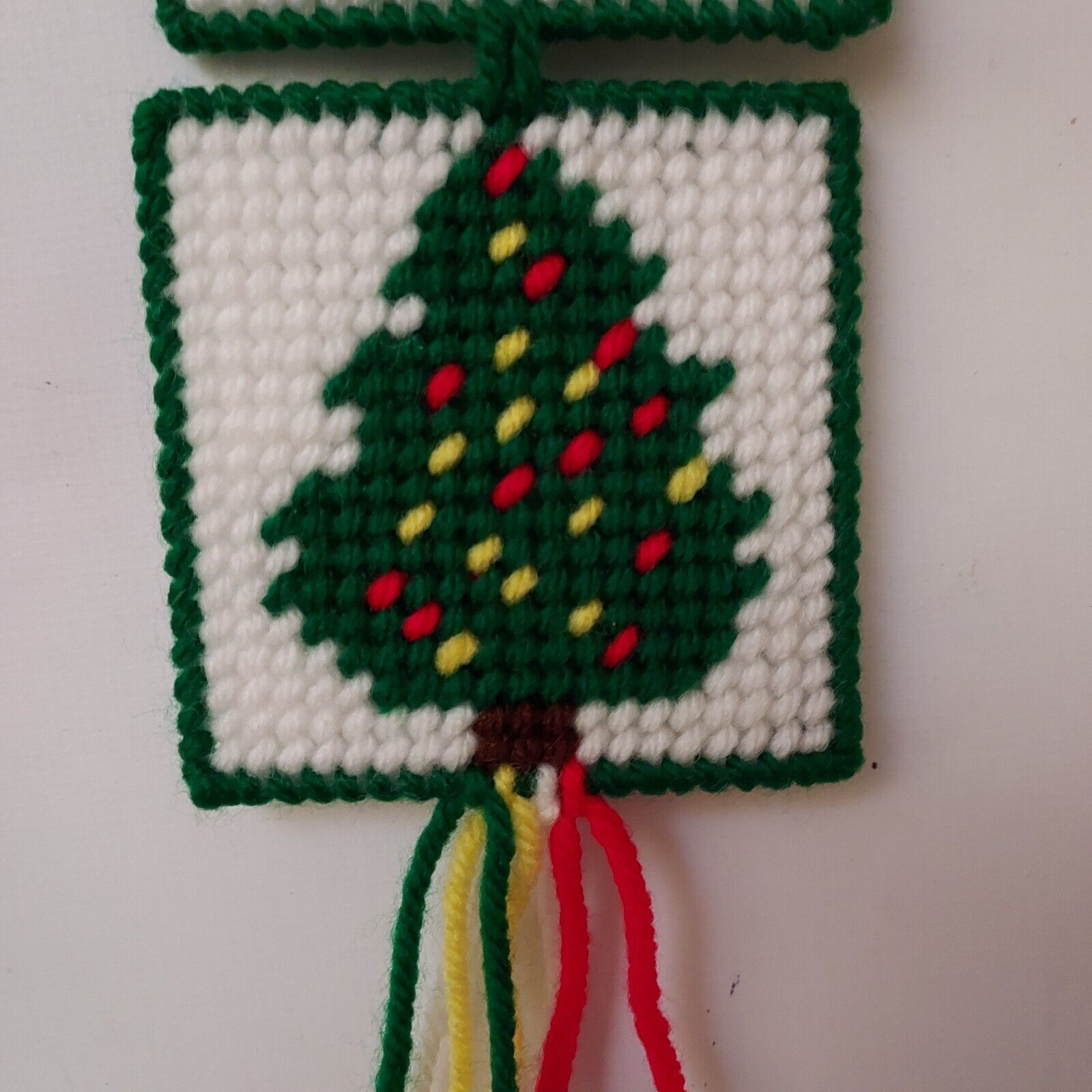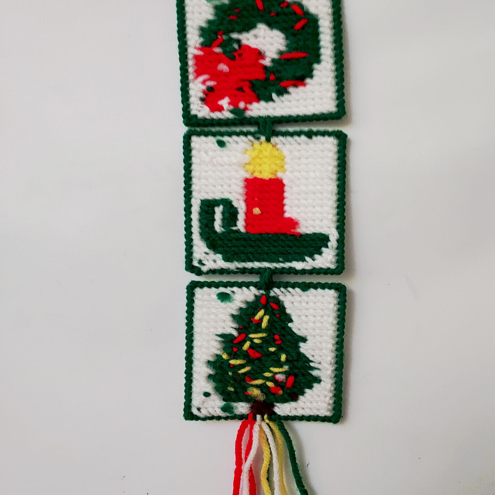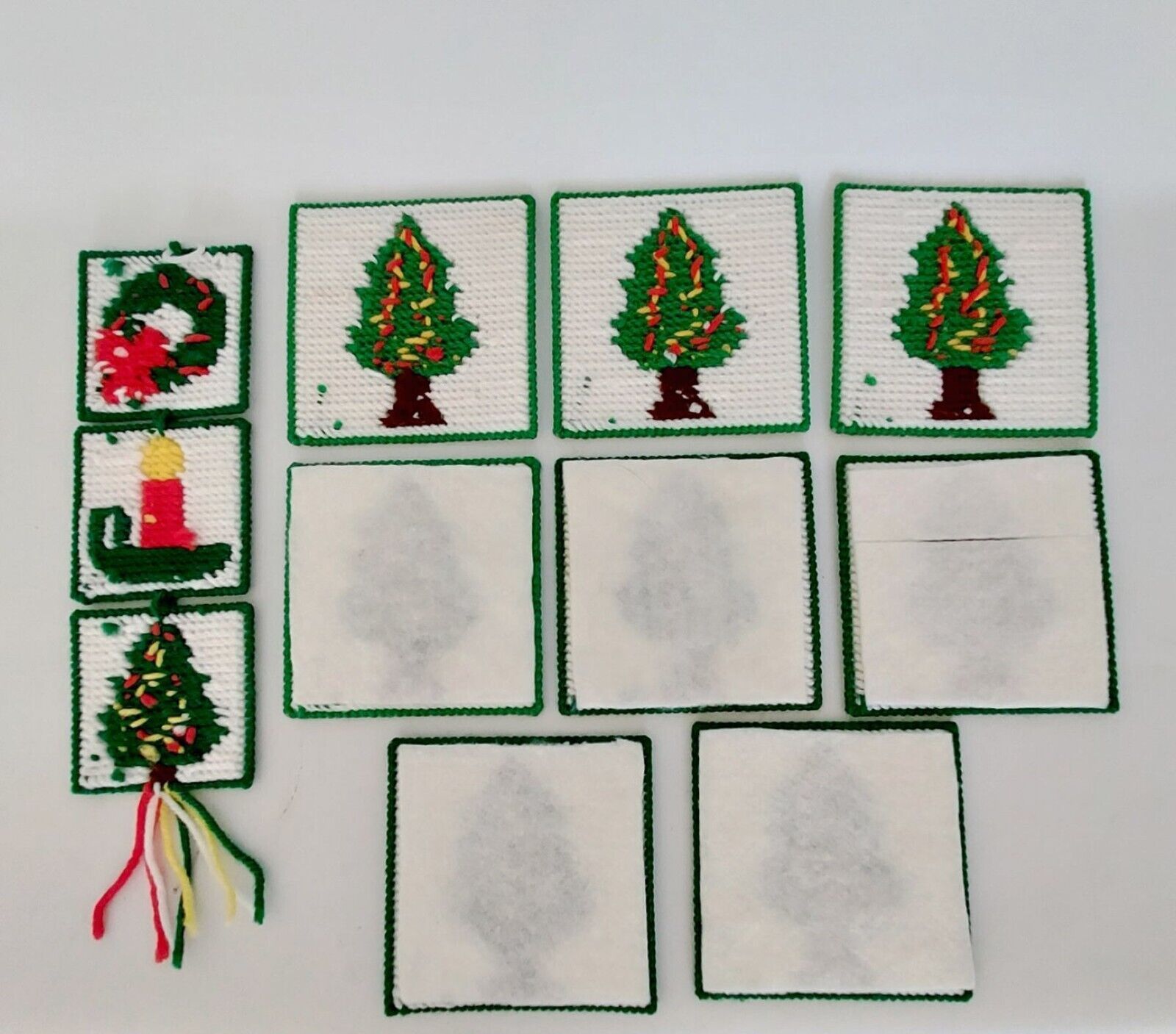 Coasters Christmas Tree Cross Stitch lot of 8 and 3 Hanging Ornaments Vintage