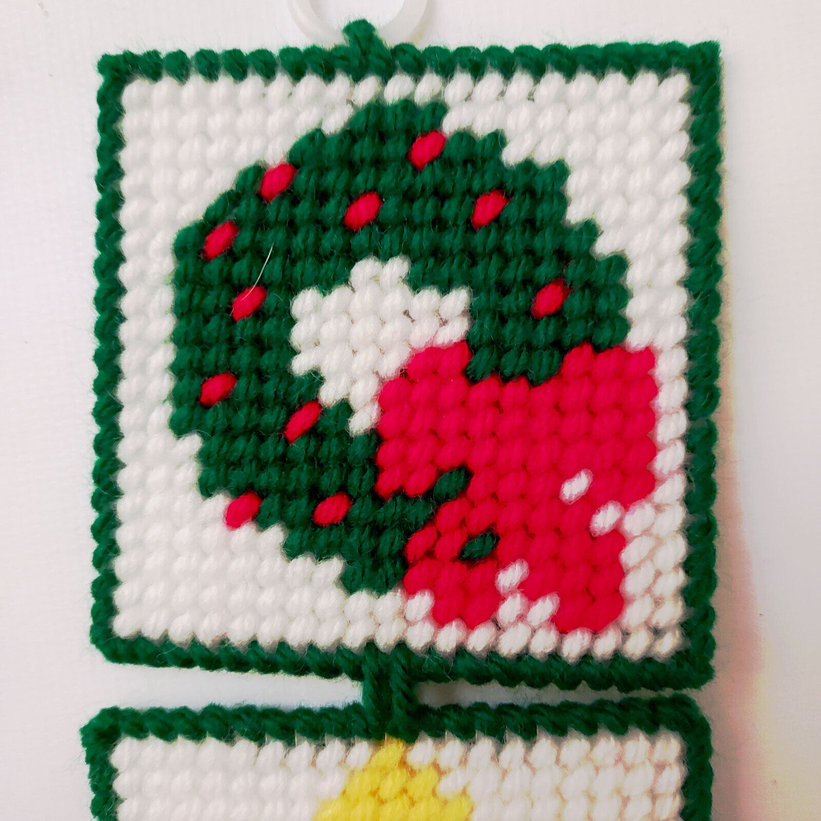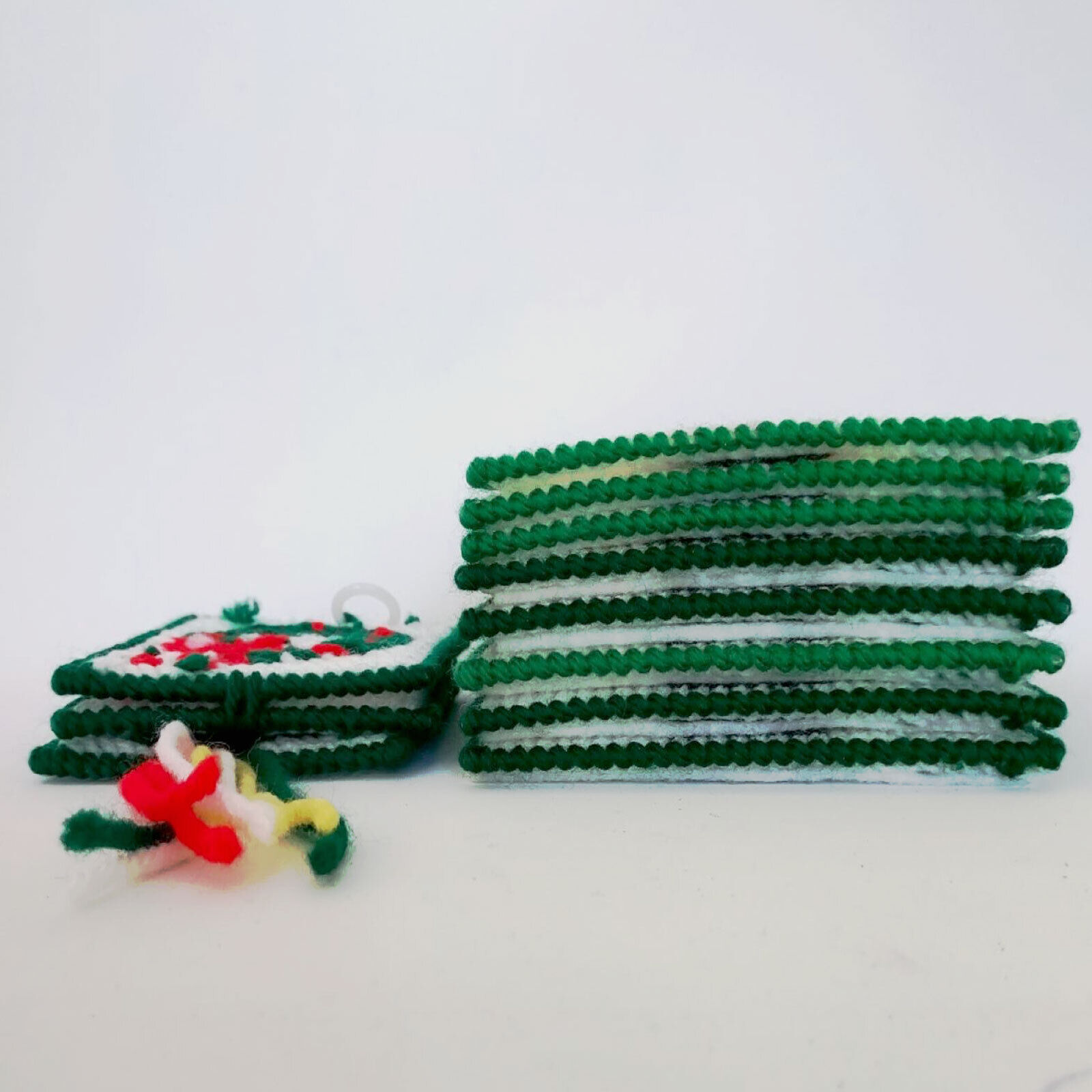 each are trimmed in green yarn