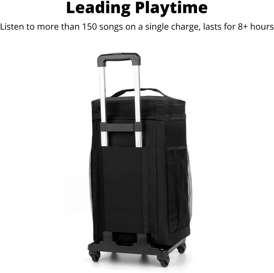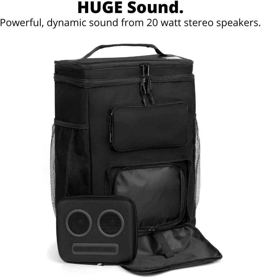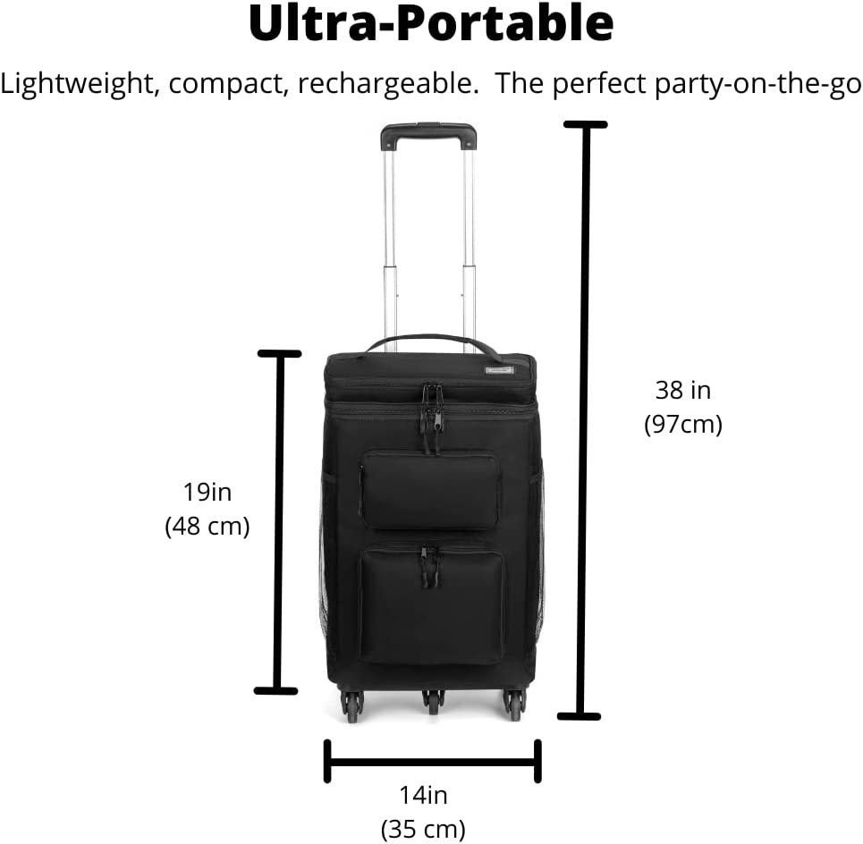 Join the thousands of happy customers using our leading technology. Lightweight, Water-Resistant Removable Speakers: Weighs less than 5 lbs and has a removable 20-watt speaker with compelling design in a water-resistant cooler with wheels. Rechargeable Battery + Built in Power Bank Charges Your iPhone / Android / Tablet: The cooler + 20-watt speakers combine to deliver powerful, full-bodied sound that lasts for 8+ hours. Works with iPhone and Android devices seamlessly, and charges them while you're on the go. Bring It Everywhere: Great for the beach, boats, picnics, tailgating, camping, parties, raves and festivals. Fits at least 30 CANS WITH ICE! What You Get: Bluetooth speaker cooler w/ 20-watt speakers, collapsable wheel trolley, micro USB cable, welcome guide, our fan-favorite 100% money back guarantee and world-class, super friendly customer service. Click "Add to Cart" now!