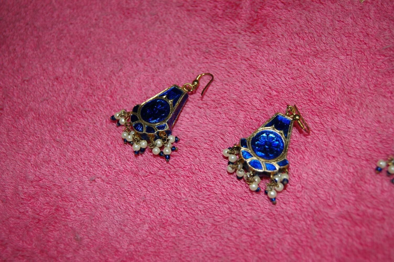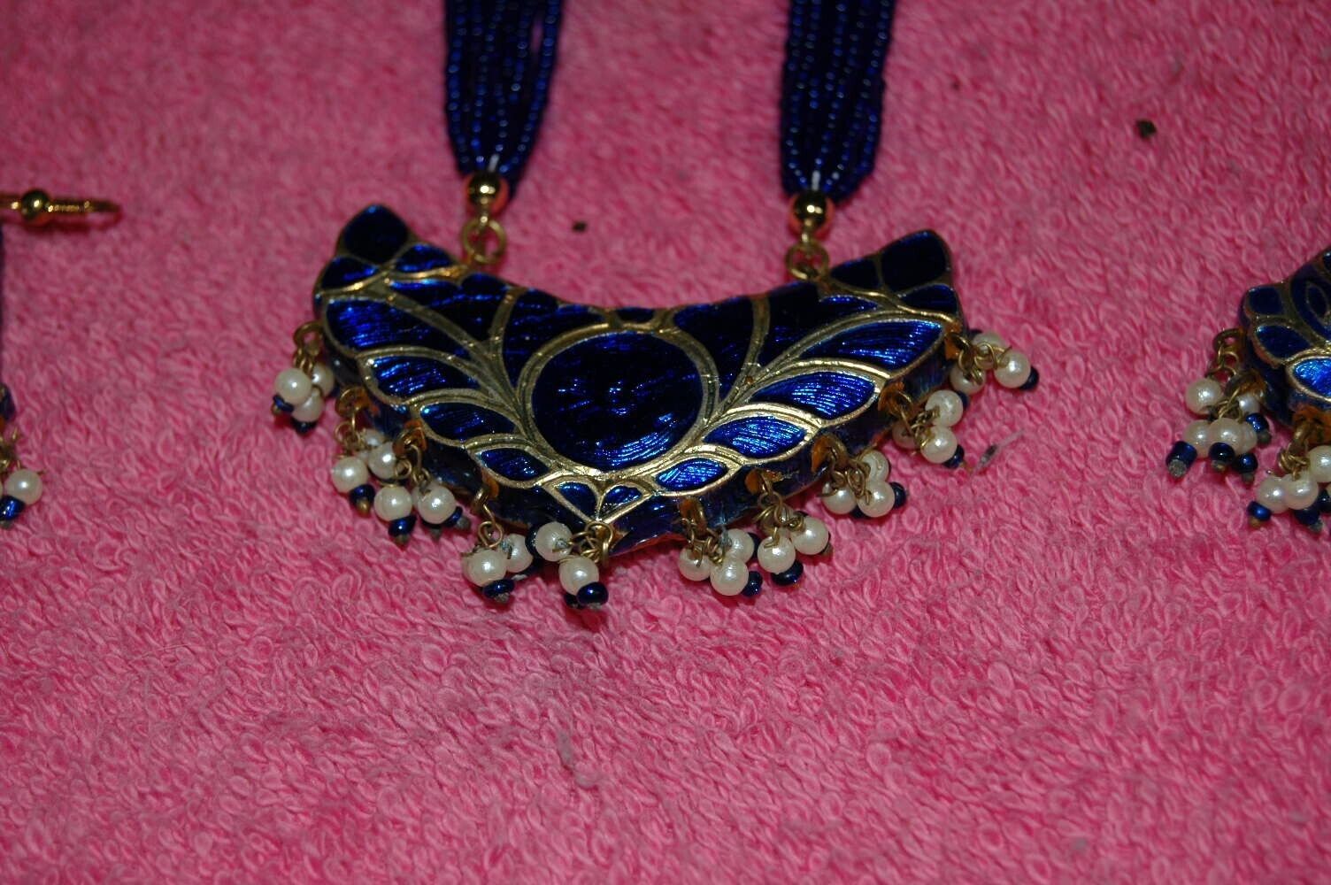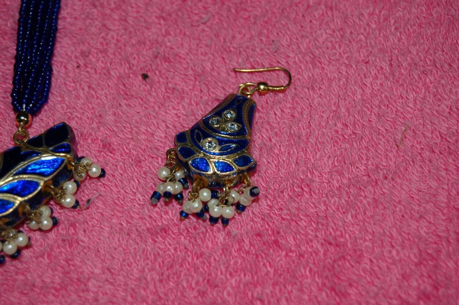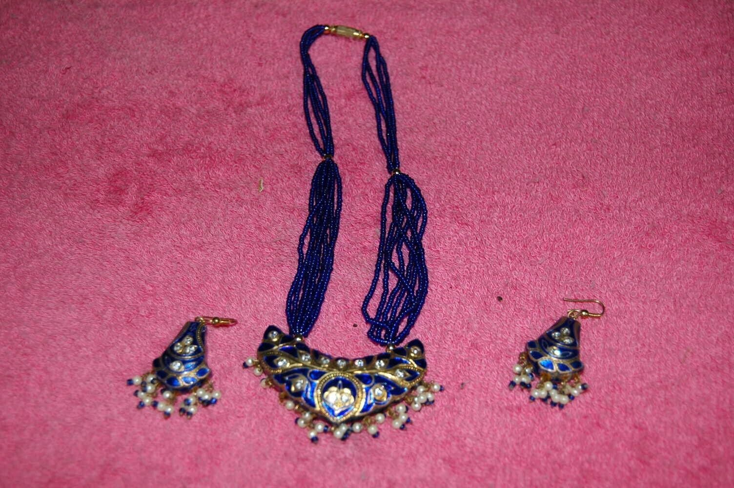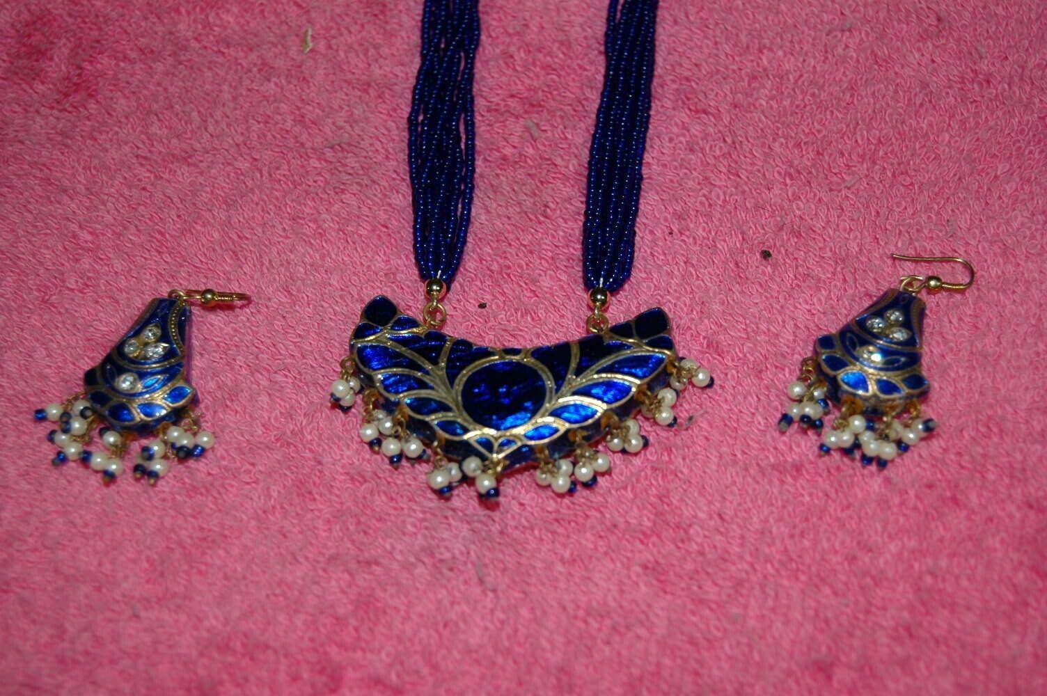 Beautiful Vintage Beaded Cloisonne Necklace Earring Set Jeweled Dangle