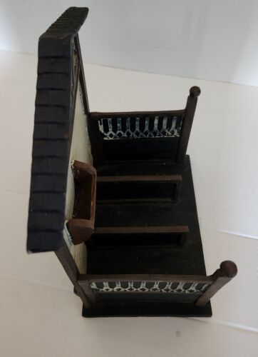 Here is a neat vintage cast Iron stable for horses. Measures 11 inches tall. 6 inches deep. 9.25 long. Maker and age are unknown. Approx 10 pounds.