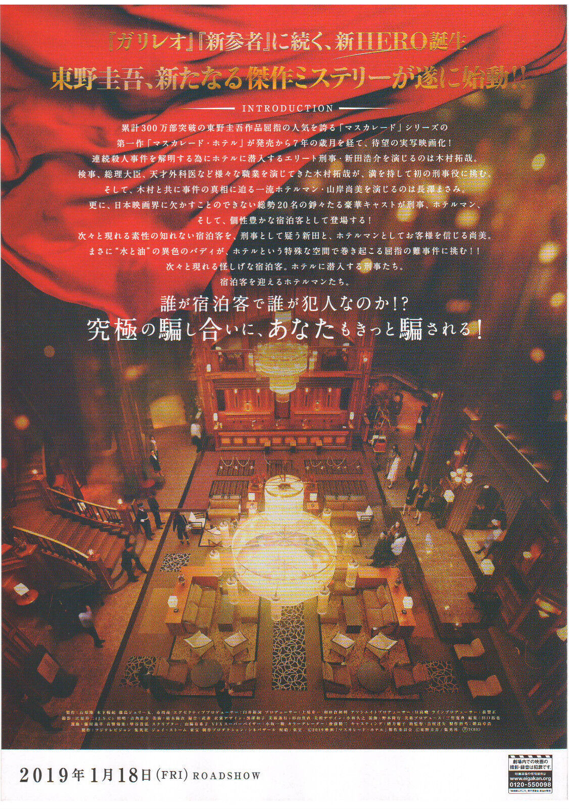 Masquerade Hotel 2019 Takuya Kimura Japanese Chirashi Mini Movie Poster B5