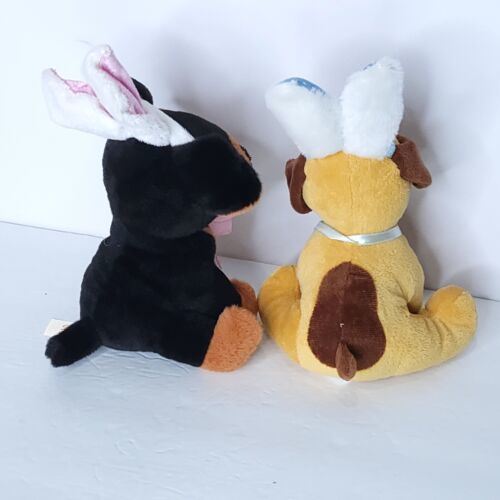 Easter Bunny Ears Plush Dog Black Brown Rottweiler Stuffed Animal 9" Lot Of 2