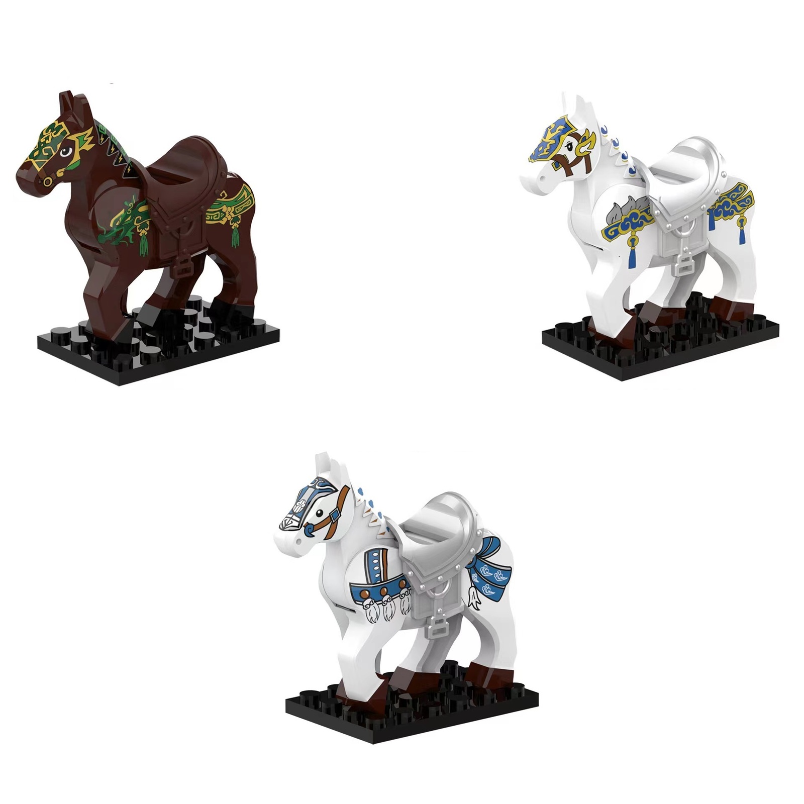 6pcs Battle horse (war horse) horse saddle Medieval Knights General Minifigures