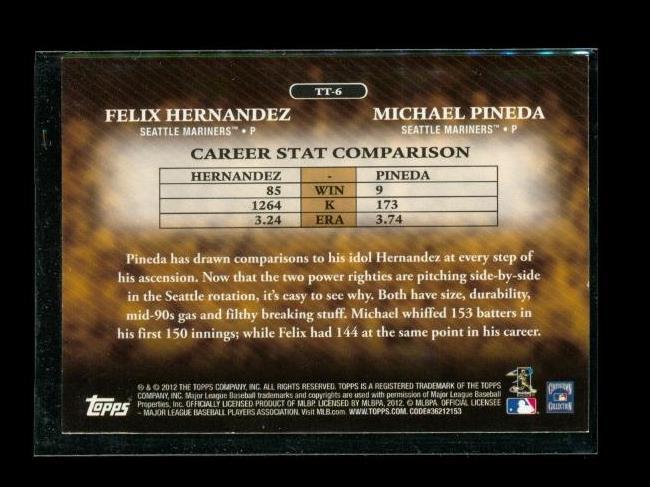 2012 TOPPS TIMELESS TALENTS Dual Baseball Card TT-6 FELIX HERNANDEZ, MICHAEL PINEDA Seattle Mariners