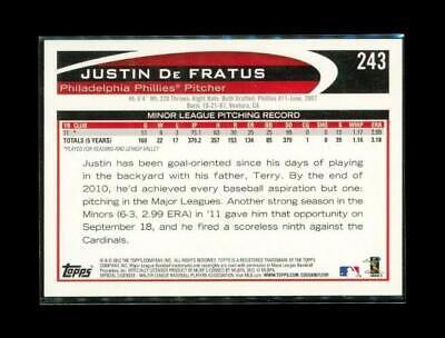 2012 TOPPS ROOKIE Baseball Card #243 JUSTIN DE FRATUS Philadelphia Phillies