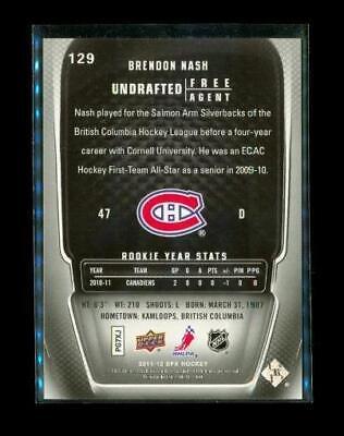 2011-12 UPPER DECK SPX ROOKIE Chrome Hockey Card #129 BRENDON NASH Montreal Canadiens Limited Edition 292/499