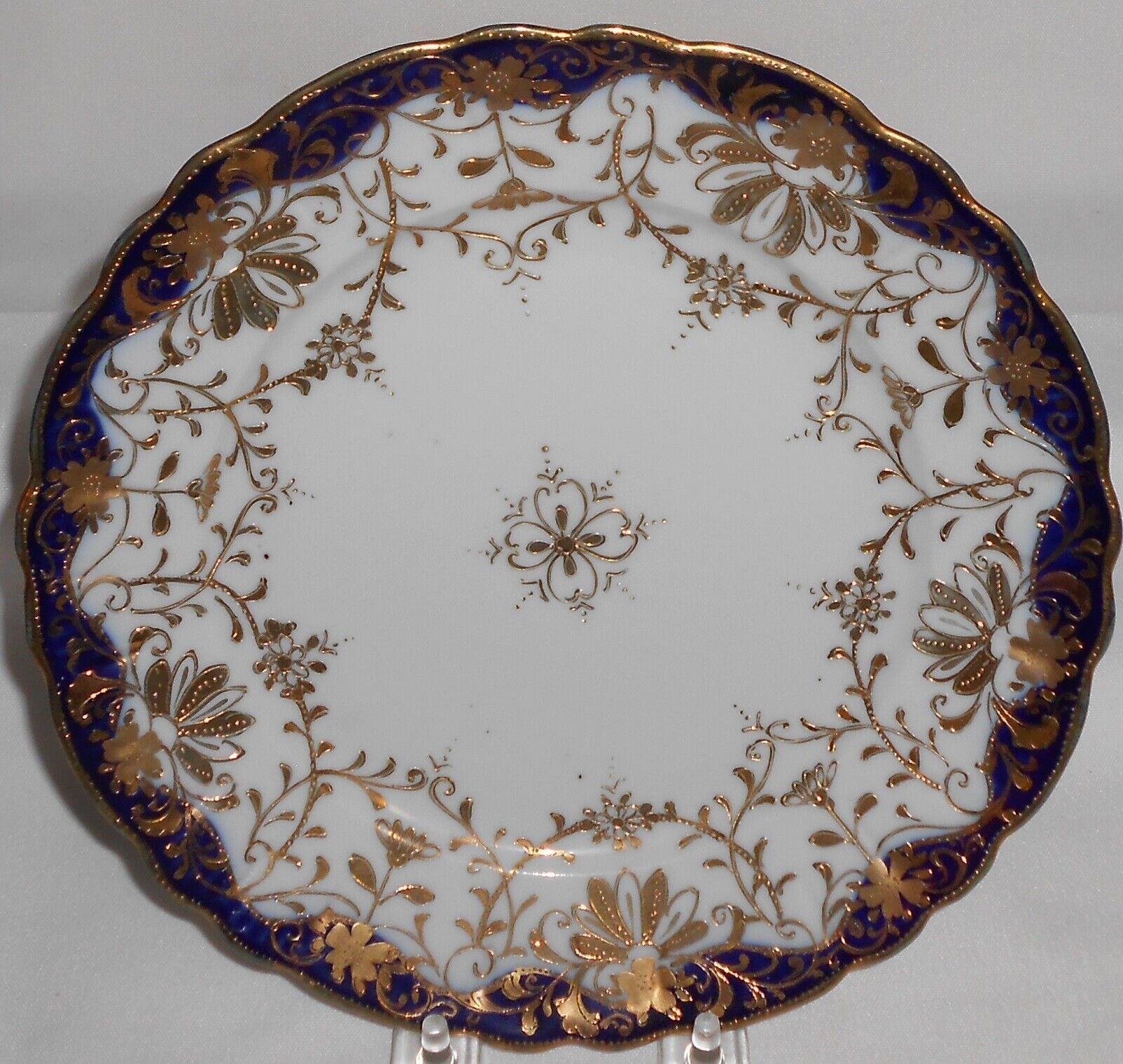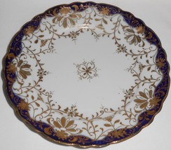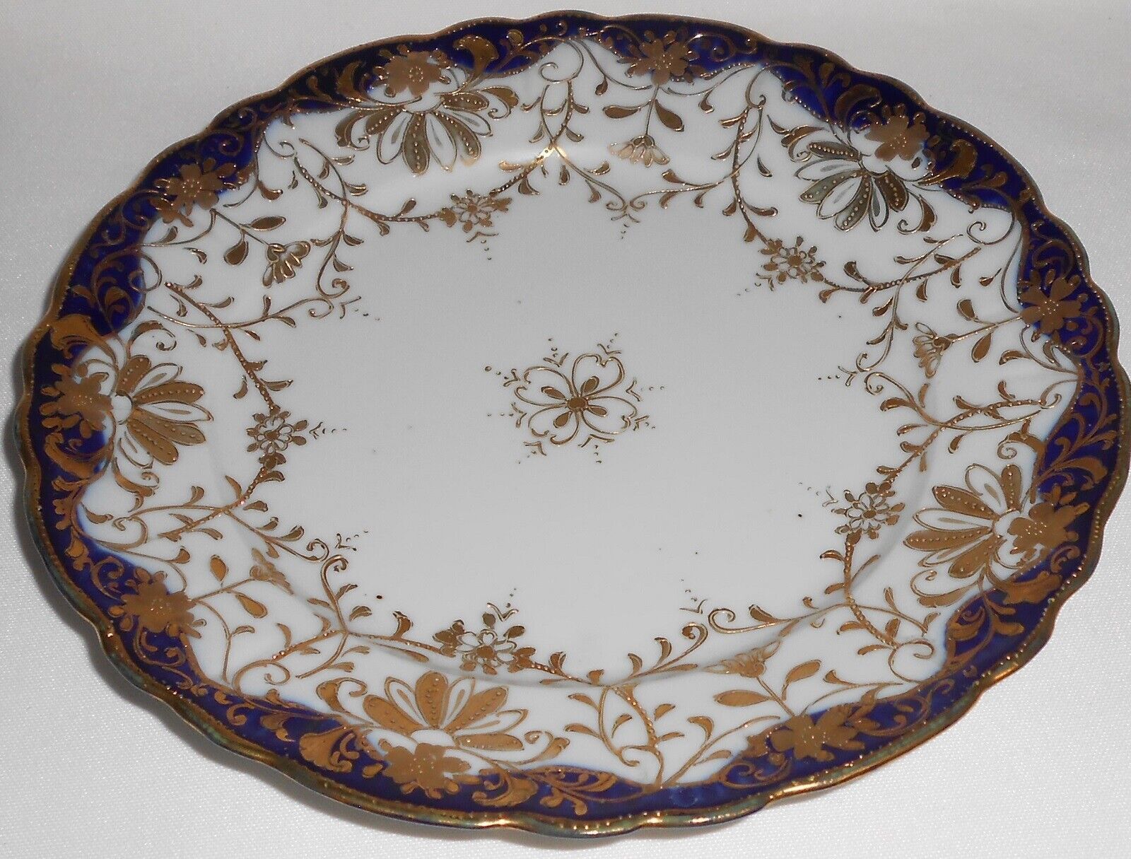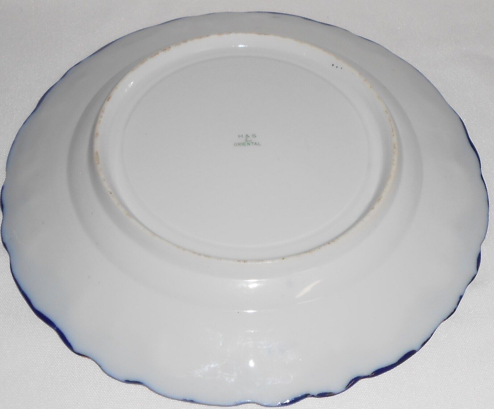 FLOW BLUE Porcelain 8 1/2" Plate marked H & S L ORIENTAL W/Encrusted Gold