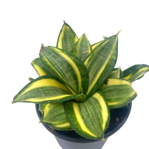 Yellow and Green Variegated Snake Plant, Sansevieria trifasciata, Well rooted Healthy Beautiful Starter Succulent in 4 inch pot
