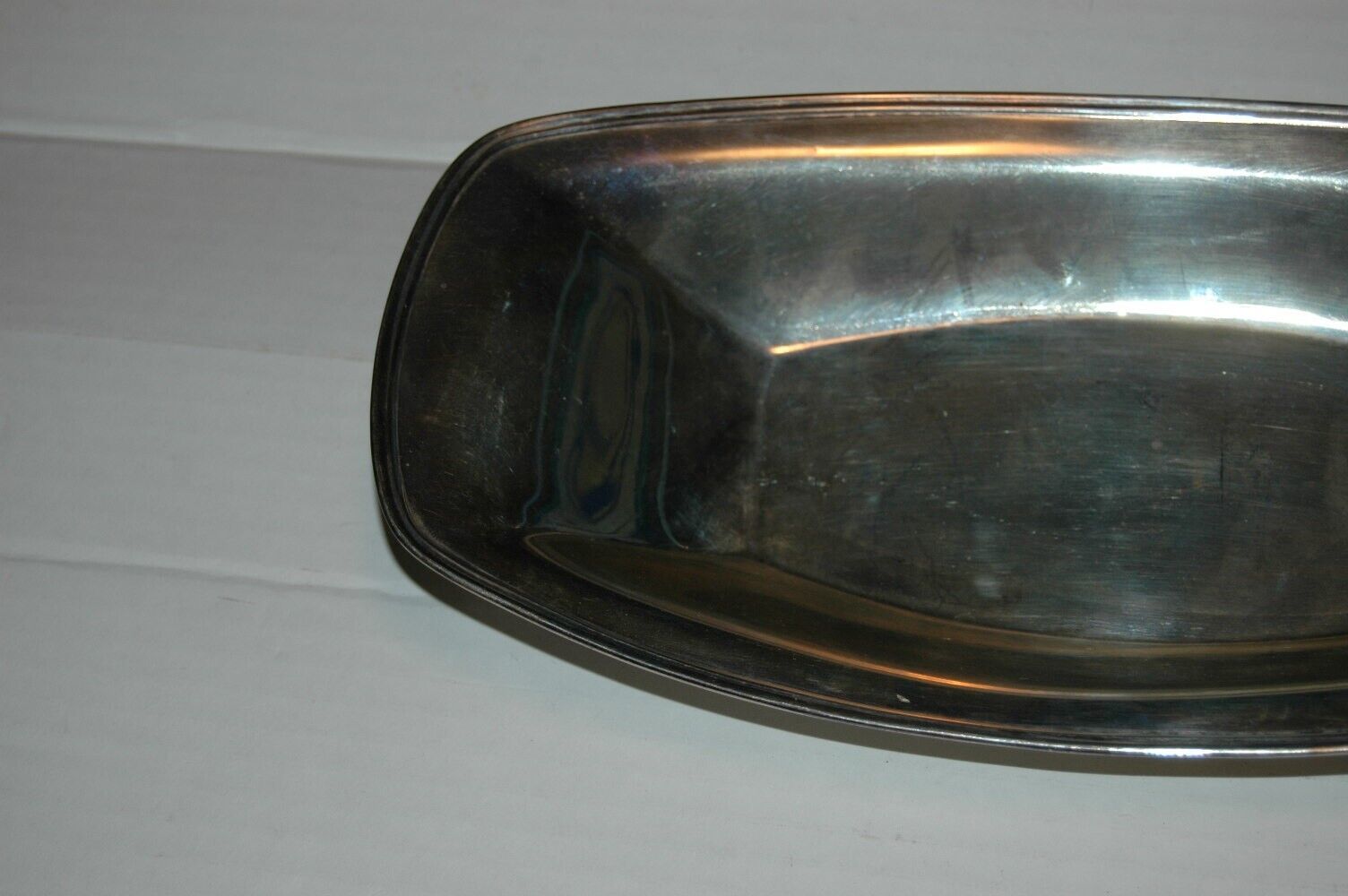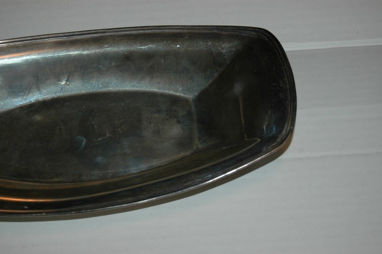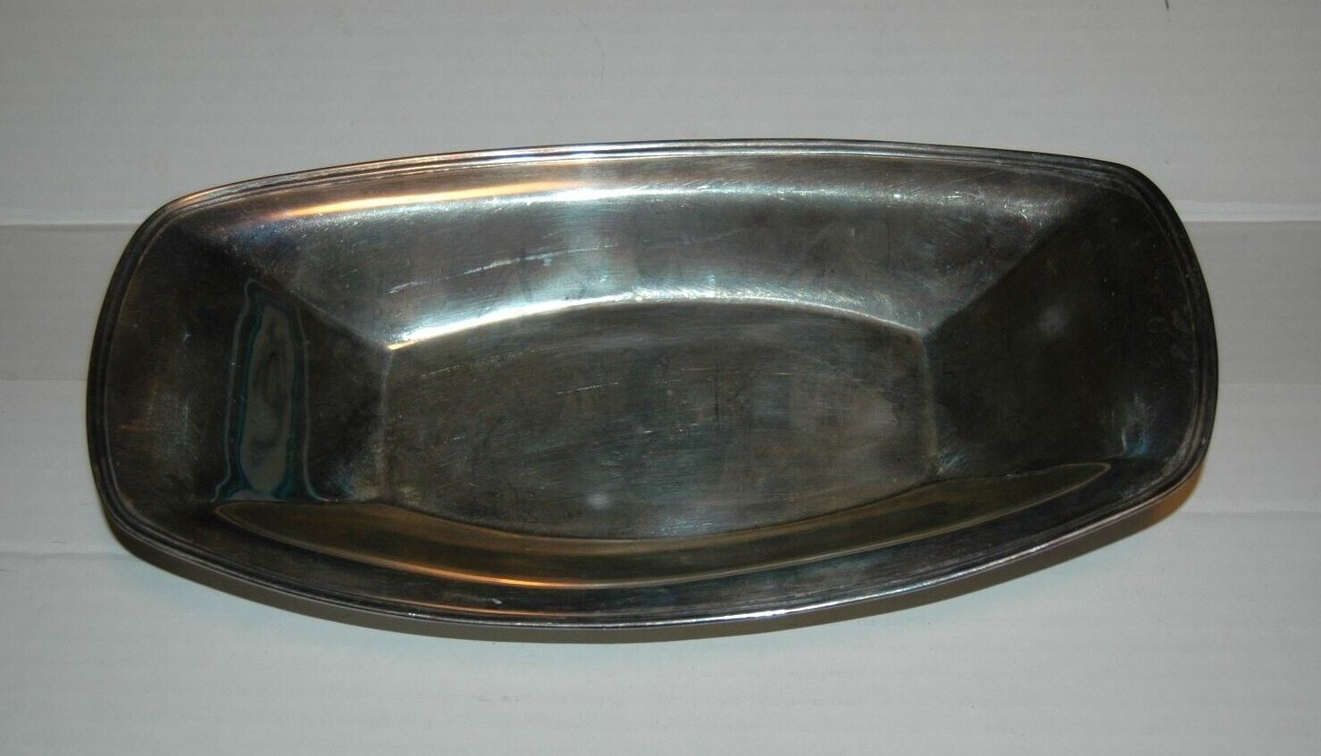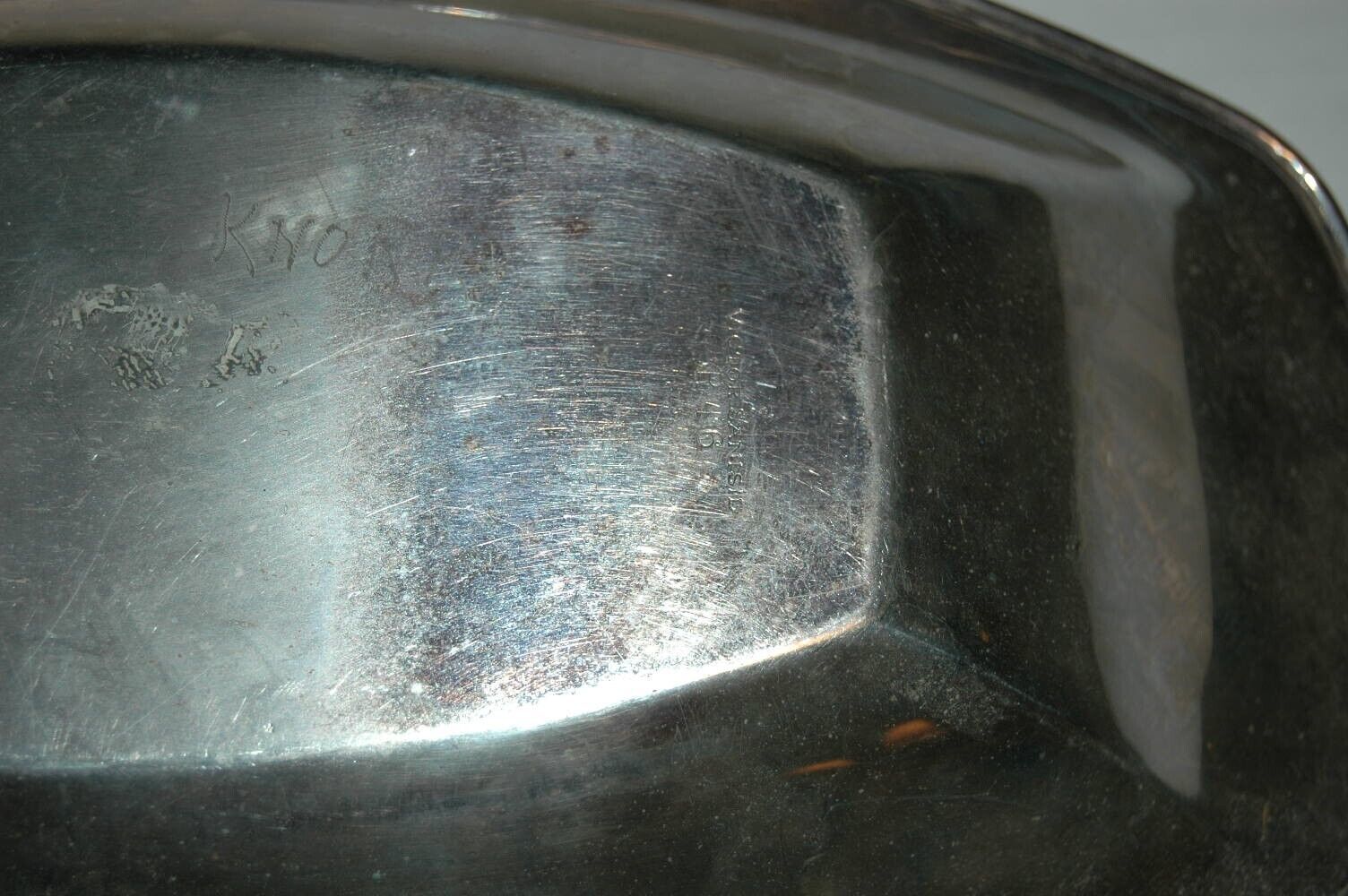 Here is a good used condition dish. Not 100% sure it is silverplate. Marked R46 Victor Sanisid on the bottom. Has some ingraving also on the bottom. Measures 12 inches long.
