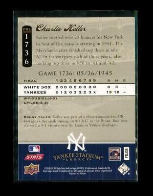 2008 UPPER DECK YANKEE STADIUM LEGACY Baseball Card YSL1786 CHARLIE KELLER Yankees 13 - White Sox 0 1945
