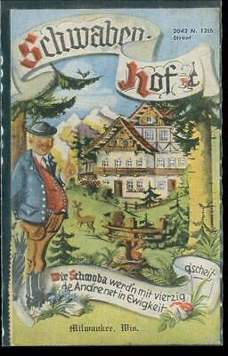Vintage Advertising Postcard Schwaben-Hof Restaurant Milwaukee WI 1953 Cancel
