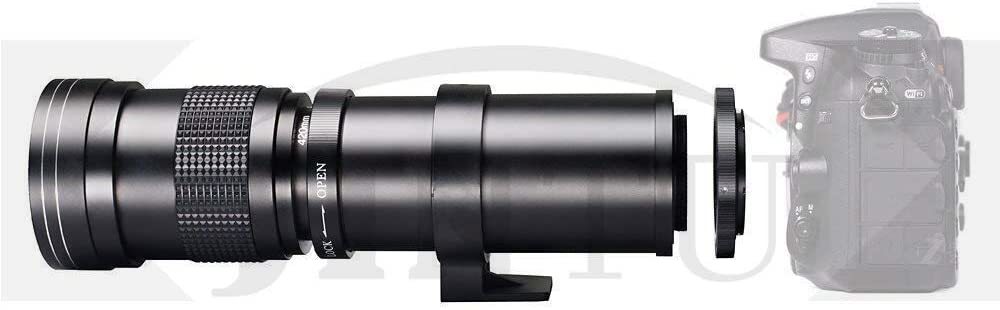 ? JINTU 420-800mm MF Super HD Telephoto lens, Solid Construction with full metal body, Small size 10.6 x 3.5 x 3.5 inch, lightweight 700g=1.8LB, easy to carry to anywhere. ? Ultra high definition image quality .with Japan design, Multi coated low-dispersion glass. The surface of the lens body is oxidized to prevent paint loss and wear resistance ? No working with canon Eos mirrorless cameras, only Compatible with DSLR cameras - Canon Digital EOS Rebel T1i, T2i, T3, T3i, T4i, T5, T5i, T6, T7, T6i, T6s, T7i, SL1, SL2, EOS60D, 70D, 77D, 80D, 50D, 40D, 30D, EOS 5D, EOS1D, EOS5D III, EOS 5D IV, EOS 5Ds, EOS 6D, EOS 7D, EOS 7D Mark II fit any Canon Digital SLR Cameras ? Perfect for the wildlife or nature photographer who wants to be hidden while taking photos of the subject. Best choice for small or distant subjects when large heavy primes are impractical, ranging from birds and wildlife, through sports, to moon and the like ? 2 Years Warranty. NOTE: This is a manual lens, NO auto focus, your camera will show "lens not attach", but not defect. pls change camera setting work as following : 1) Set the mode dial to Manual (M). 2) Set the Release w/o Lens option in the camera menu to Enable. 3) Set the Shutter lock option in the camera menu to Off: no lens.