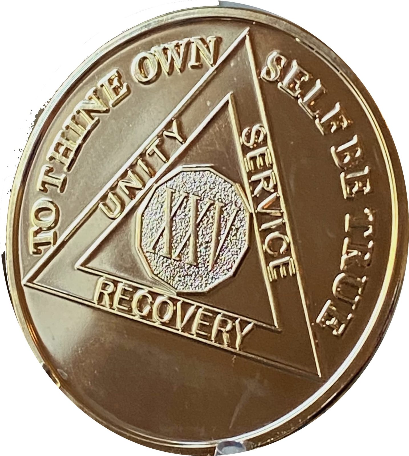 25 Year AA Medallion Extra Large 1.5 Inch Challenge Coin Size Sobriety Chip. Glossy Gold Plating Covers This Sobriety Coin. Serenity Prayer On Back. Extra Thick Design For A Premium Weight And Feel. Great Gift For Members Of Alcoholics Anonymous Celebrating A Year Of Recovery.