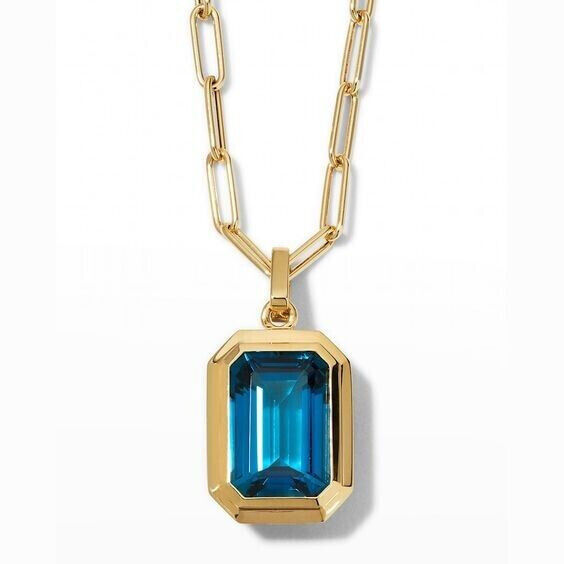 2.5Ct Emerald Cut Simulated London Blue Topaz Pendant 14K Yellow Gold Plated
