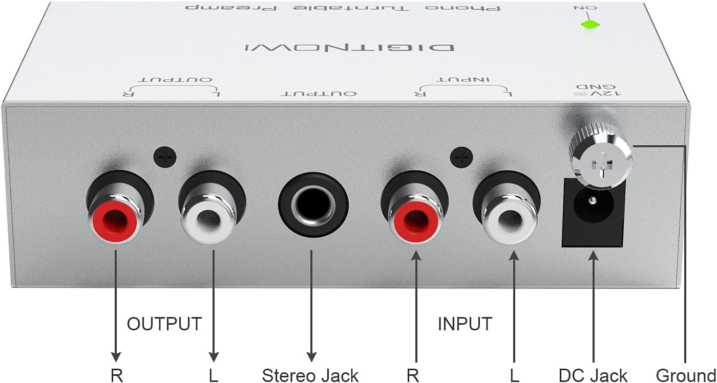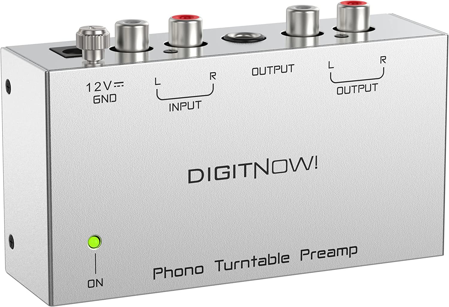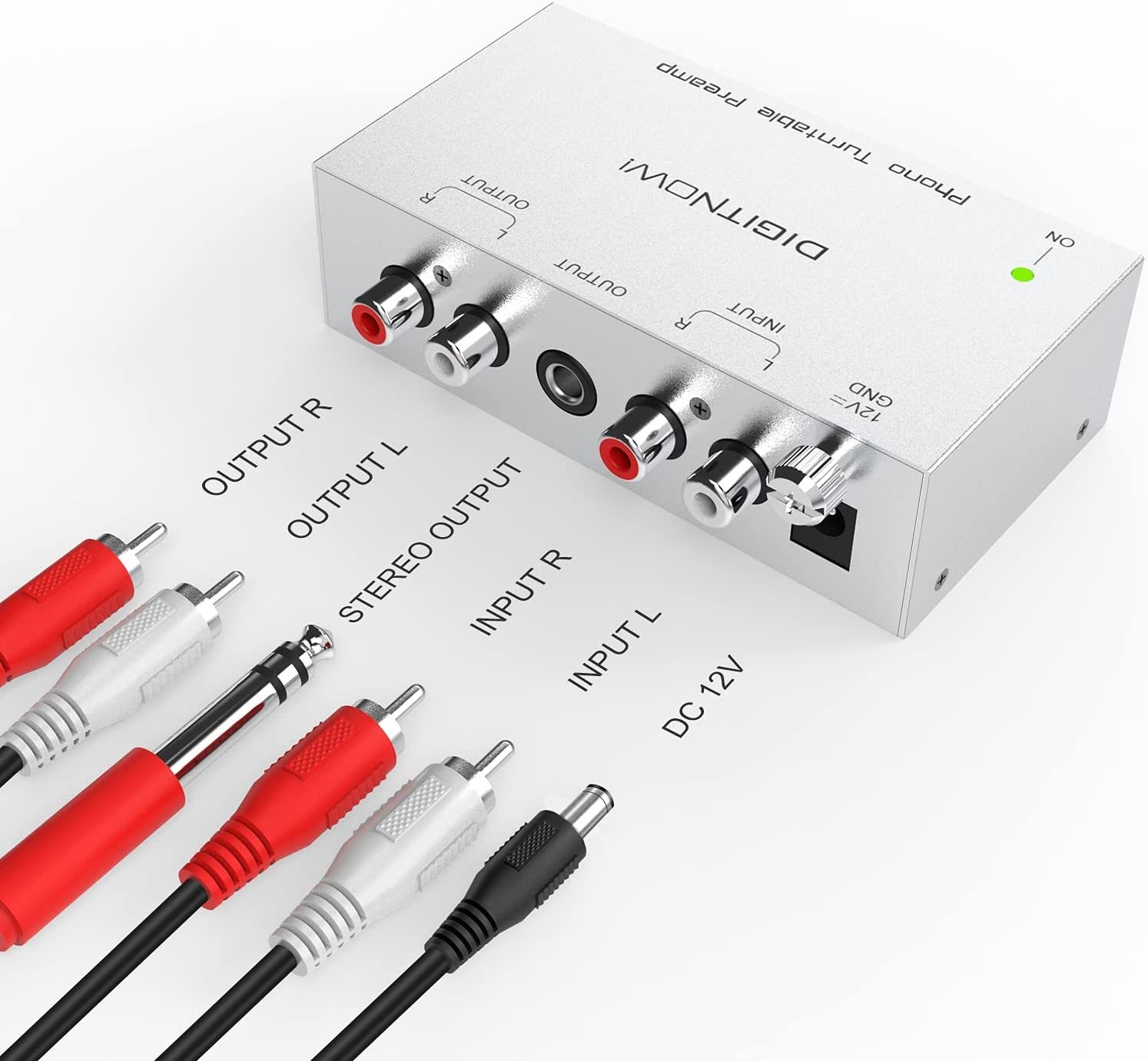 Convert Phono Signal?The Turntable Preamp Converts phono signals to line level for better sounding audio and volume.This state-of-the-art phono preamp can accommodate all magnetic pickups Low Noise Operation: The Turntable Preamp offers outstanding performance with it?s Low-Noise Audio Operational Amplifiers.Make your vinyl records deliver sound exactly as it's read from your turntable's needle RCA Input RCA /TRS Output: This Mini Preamp has stereo RCA inputs , stereo RCA and TRS outputs. Connect the turntable to the RCA inputs and ground Then, connect the amplifier receiver to the RCA/ TRS outputs(DC 12V Adapter is included) Simple Plug Play:Connect any Phono Turntable Preamps to modern sound equipment without specialized phono input for amplifying music.Simply hook up the preamp to both turntable and audio device so you can enjoy vinyl in no time 1 Year Warrranty: DIGITNOW guarantee this Electric Phono Preamplifier with both a 30-day, no hassle money back return policy and a 1 year manufacturer?s guarantee