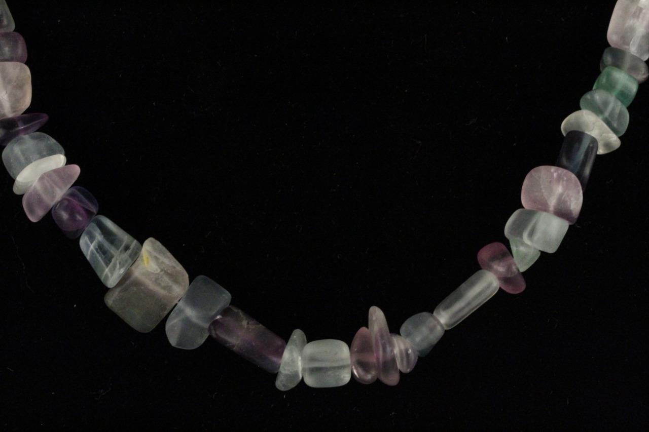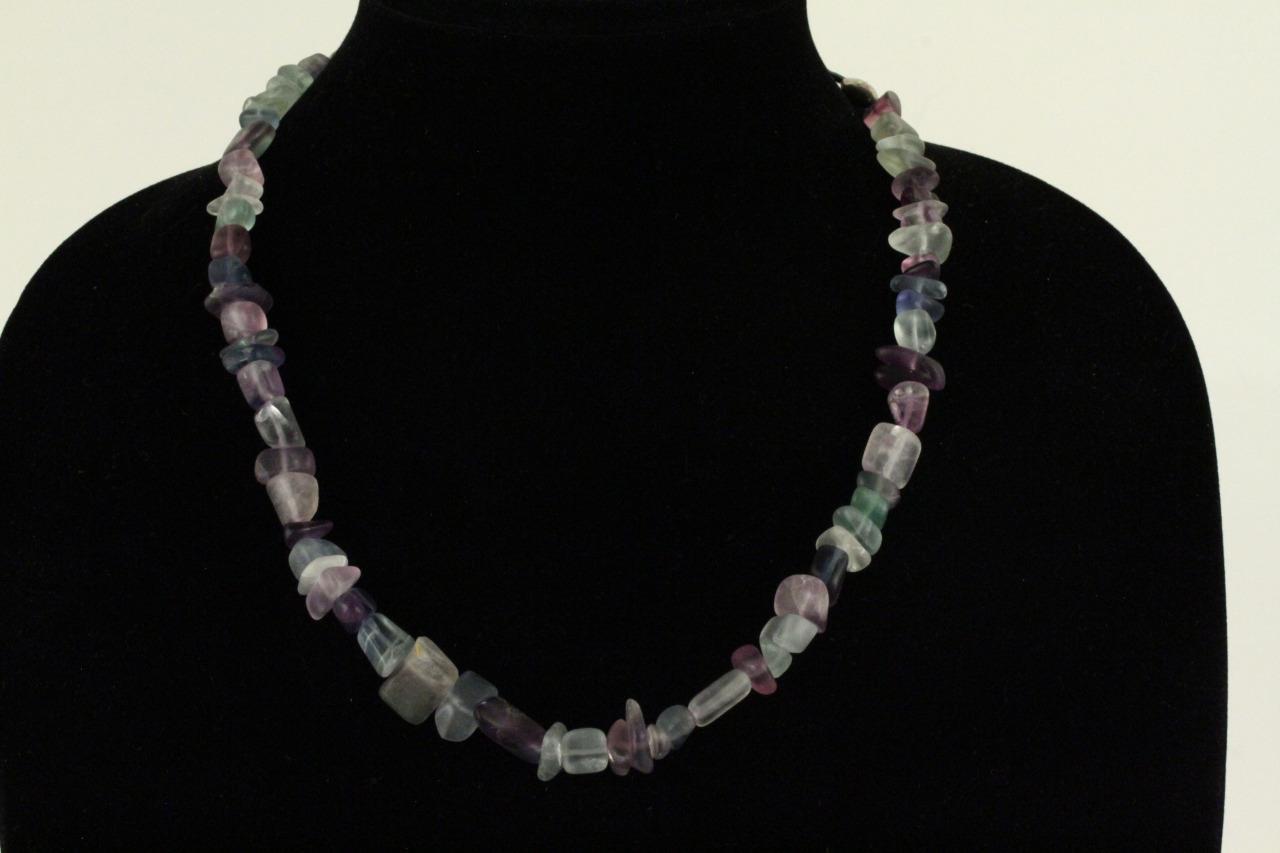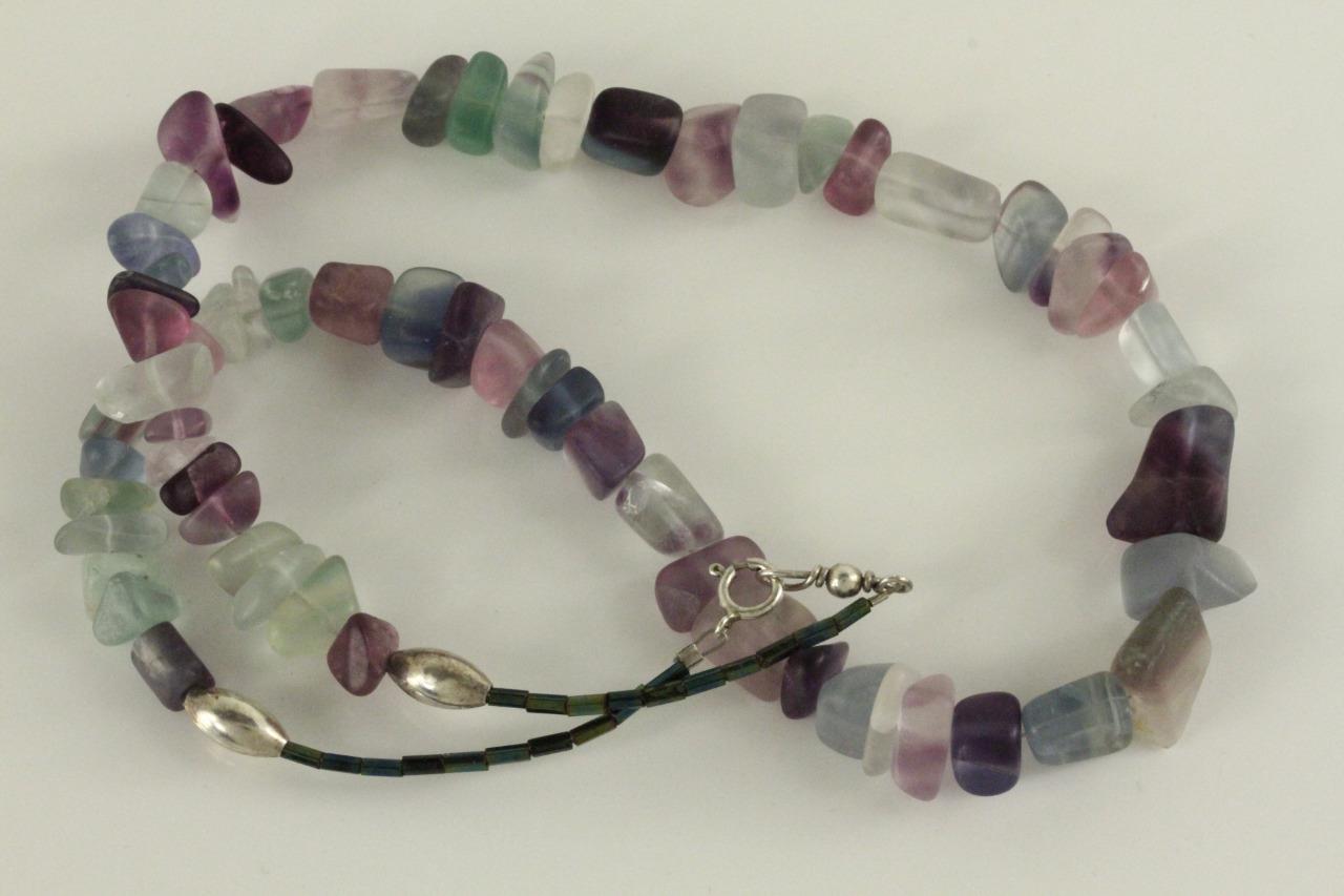 Artisan Jewelry Necklace Tumbled Rainbow FLOURITE Silver Beaded Necklace 20"