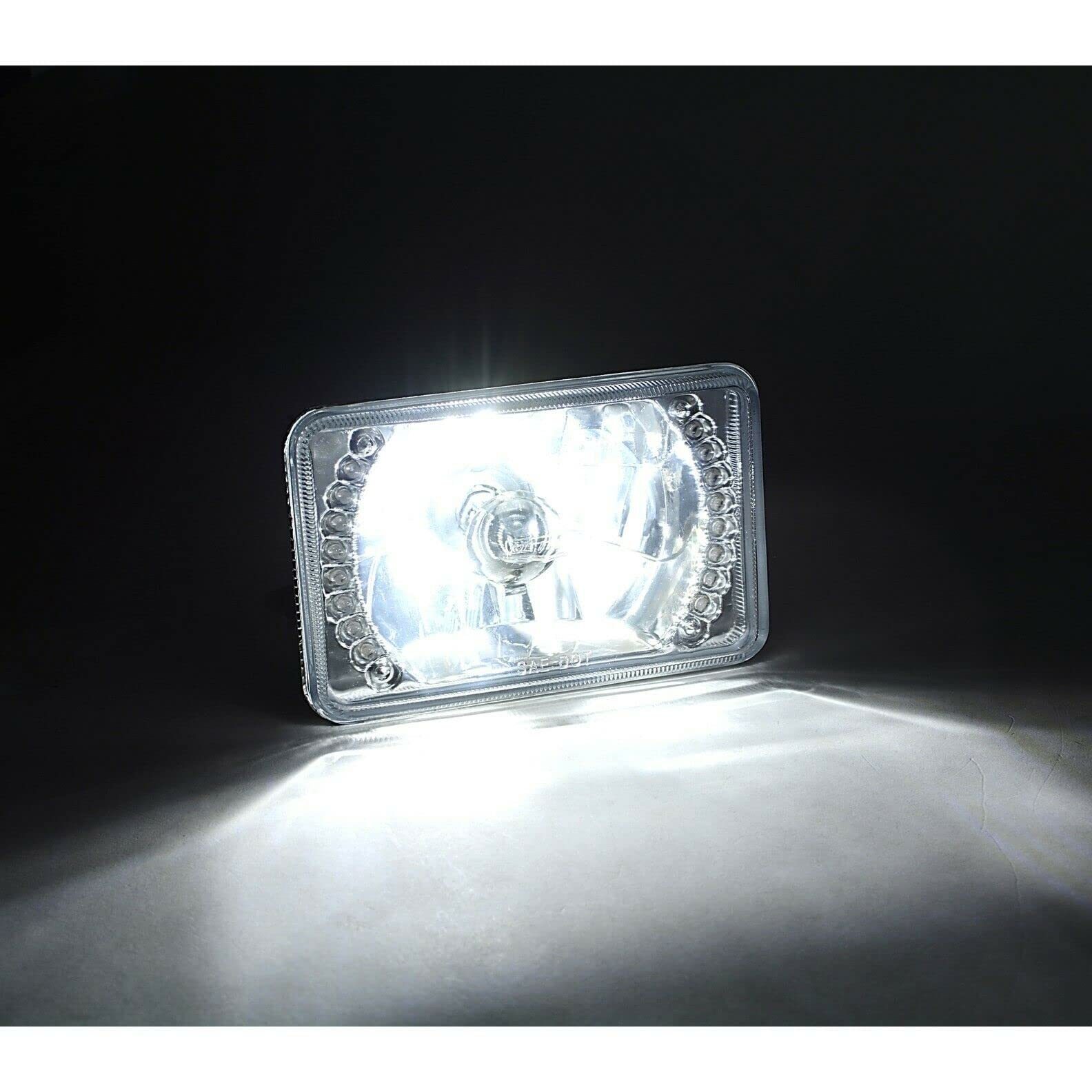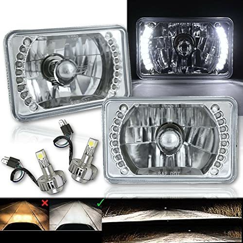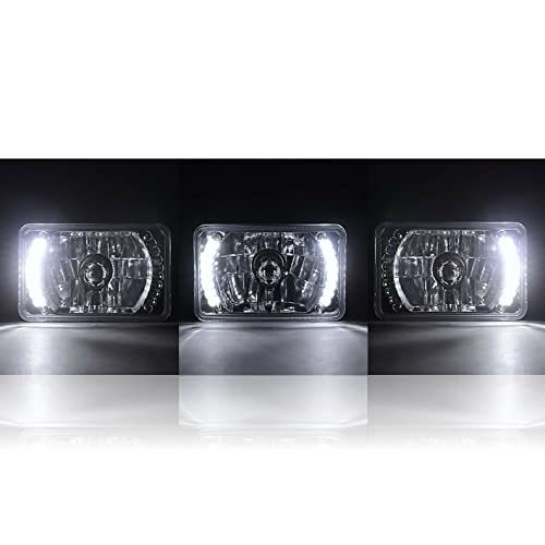 4X6 Inch Square H4 Conversion White Split Circuit Led Halo Headlights - Pair Diamond Crystal Clear Glass Lens Low Beam And High Beam Headlights Brighter And Whiter Than Stock Lights Bulbs Are Removable And Replaceable Includes 6000K White Led H4 Bulbs Plugs Into Factory Wiring Plugs Halo Rings Are Pre Installed Into Headlight Housings Split Circuit Halos Can Be Used As Daytime Running Lights Or Directional Turn Signals Halo Is A Very Bright White Halo Halos Are Wired Separately With A Power And Ground Wire DOT / SAE Approved Part Number Interchange: H4651 / H4656 / 4651 / 4652
