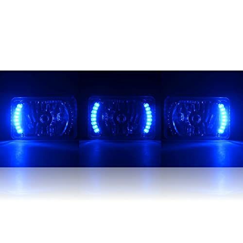 Pair - 4X6 Blue Semi Sealed Beam Glass Faced H4 Blue Led Halo Angel Eye Headlights. Blue Led Rings Can Be Wired To Be Daytime Running Lights, Turn Signals Or Stay On With The Headlights. Includes (2) High Intensity Led H4 6000K White Light Bulbs.