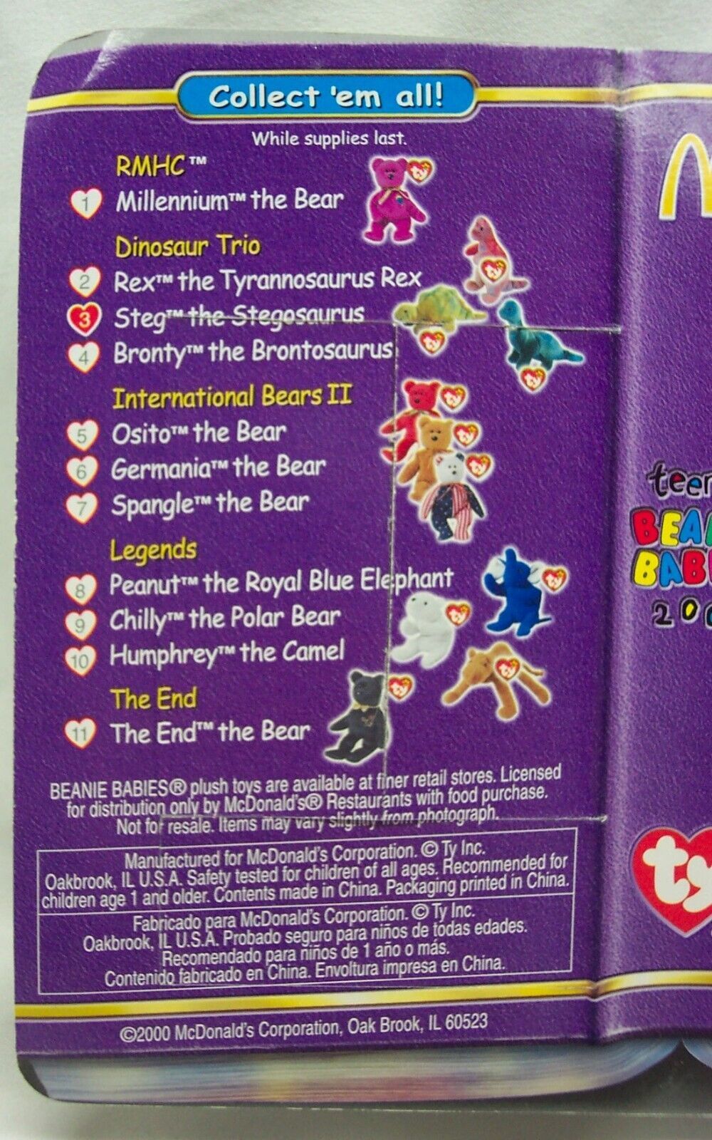 TY McDonald's Dinosaur Trio STEG THE STEGOSAURUS 5" Teenie Beanie Toy NEW Errors