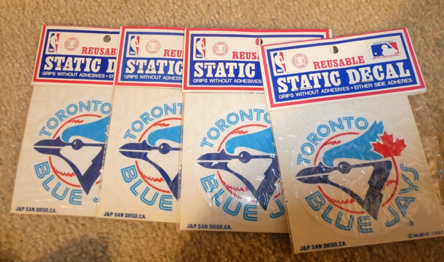 Lot of 4 Vintage 1987 J&P Toronto Blue Jays MLB Reusable Static Decals NIP