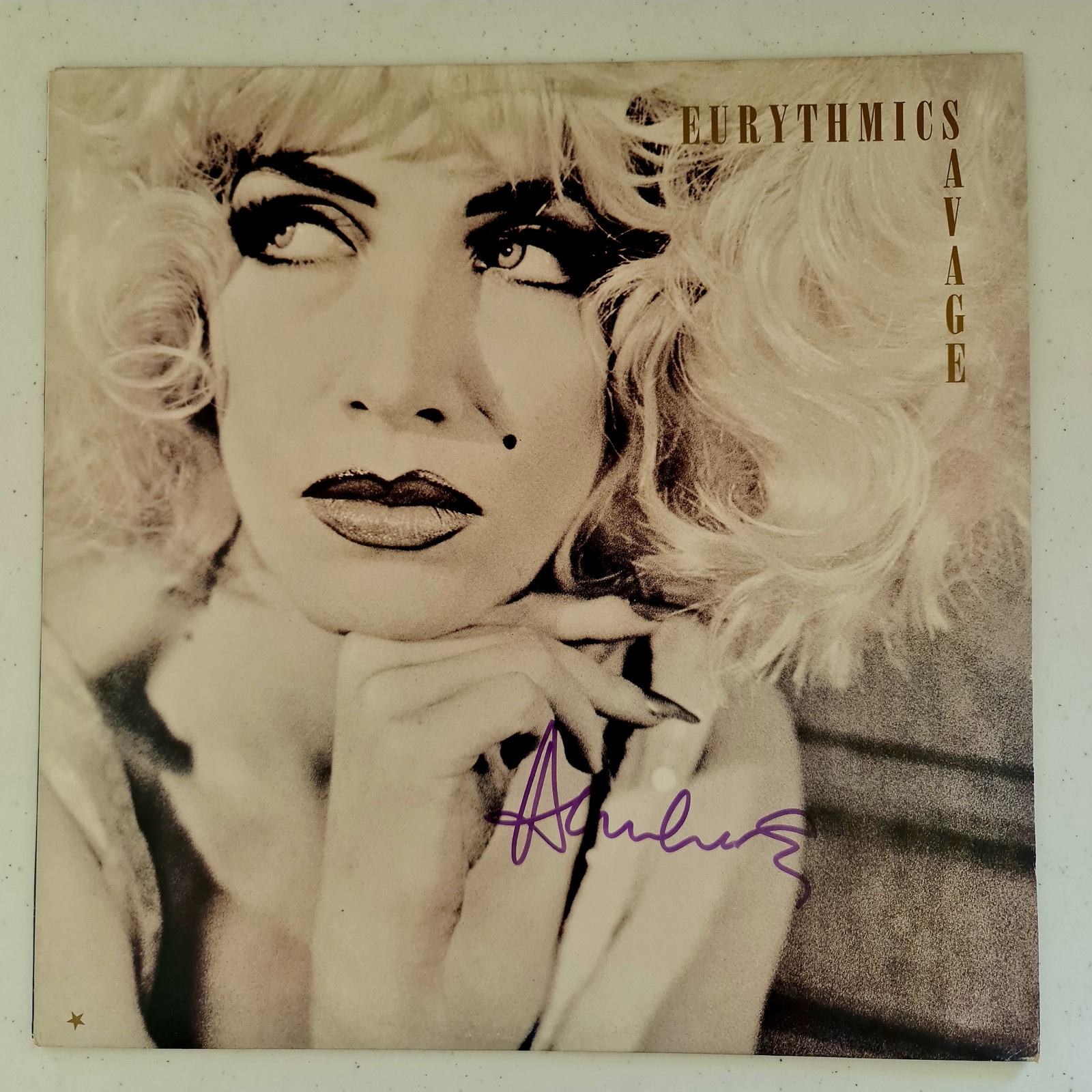 Looking for a rare and authentic piece of music memorabilia? Look no further than this autographed album cover of Annie Lennox's iconic album "Savage"!