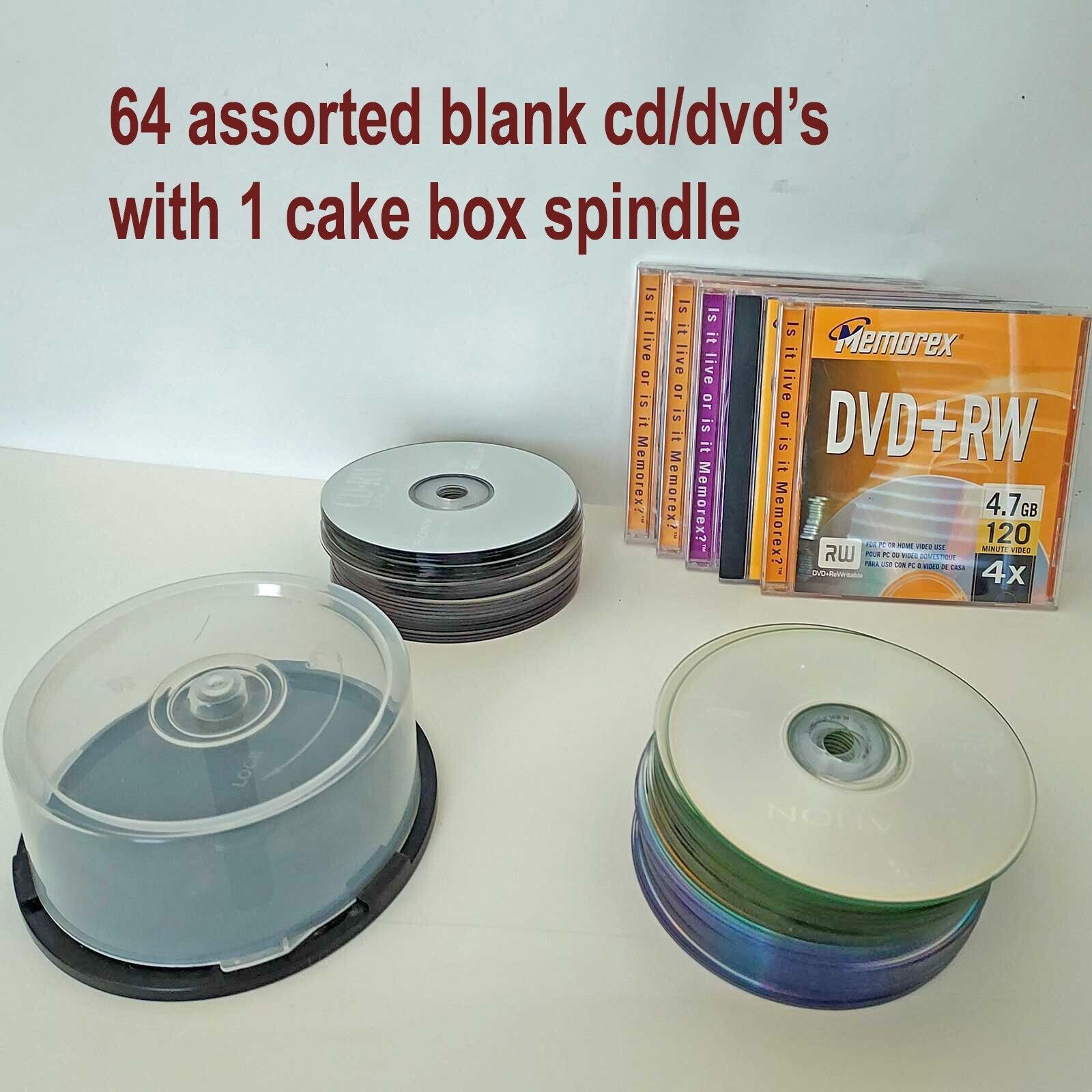 64 Blank cd/DVD's With 1 Cake Box Spindle Sony, Memorex Maxell Imation