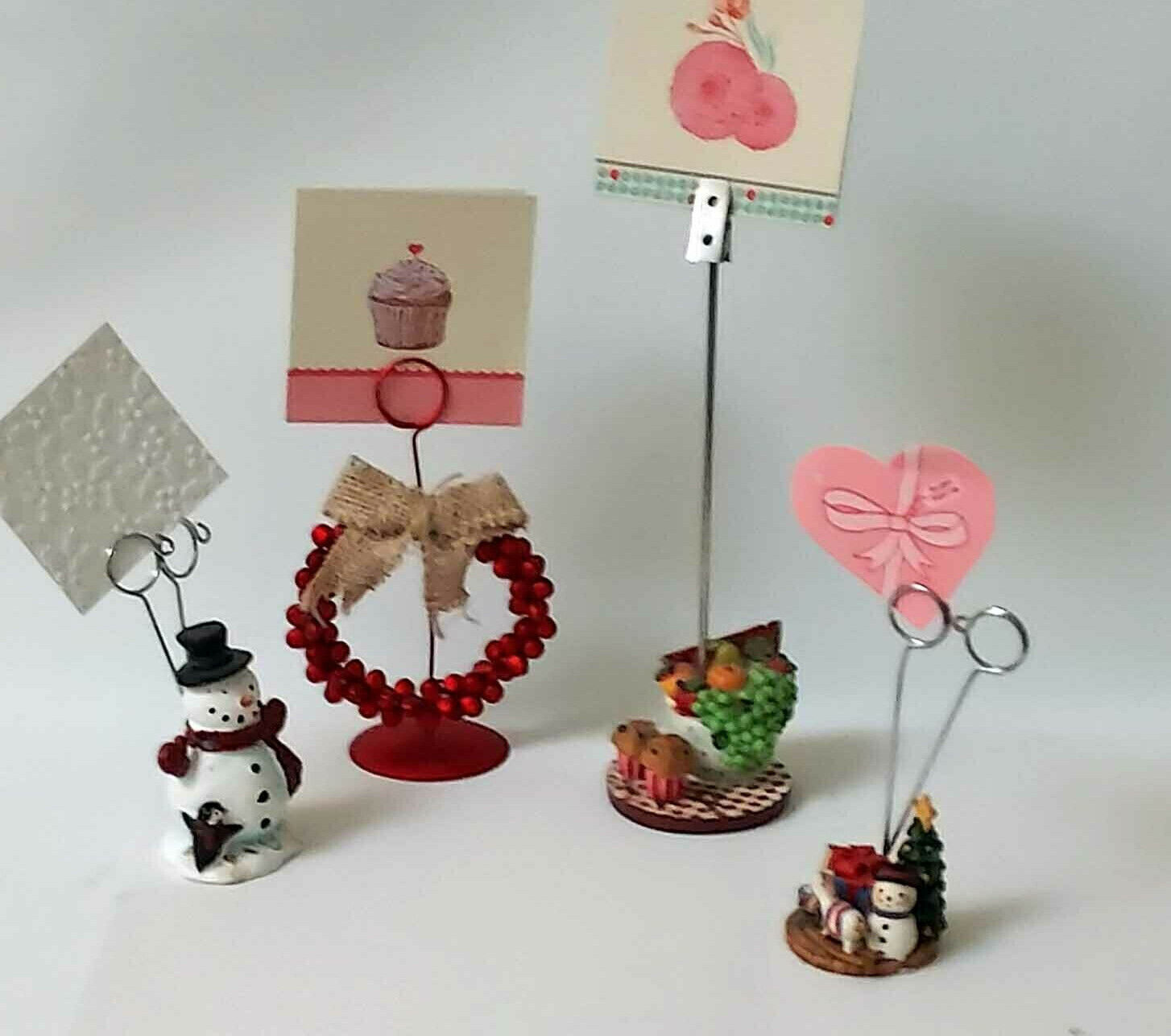 Lot of 4 Christmas Snowman Recipe Photo Card Holders Display Clips Organizers