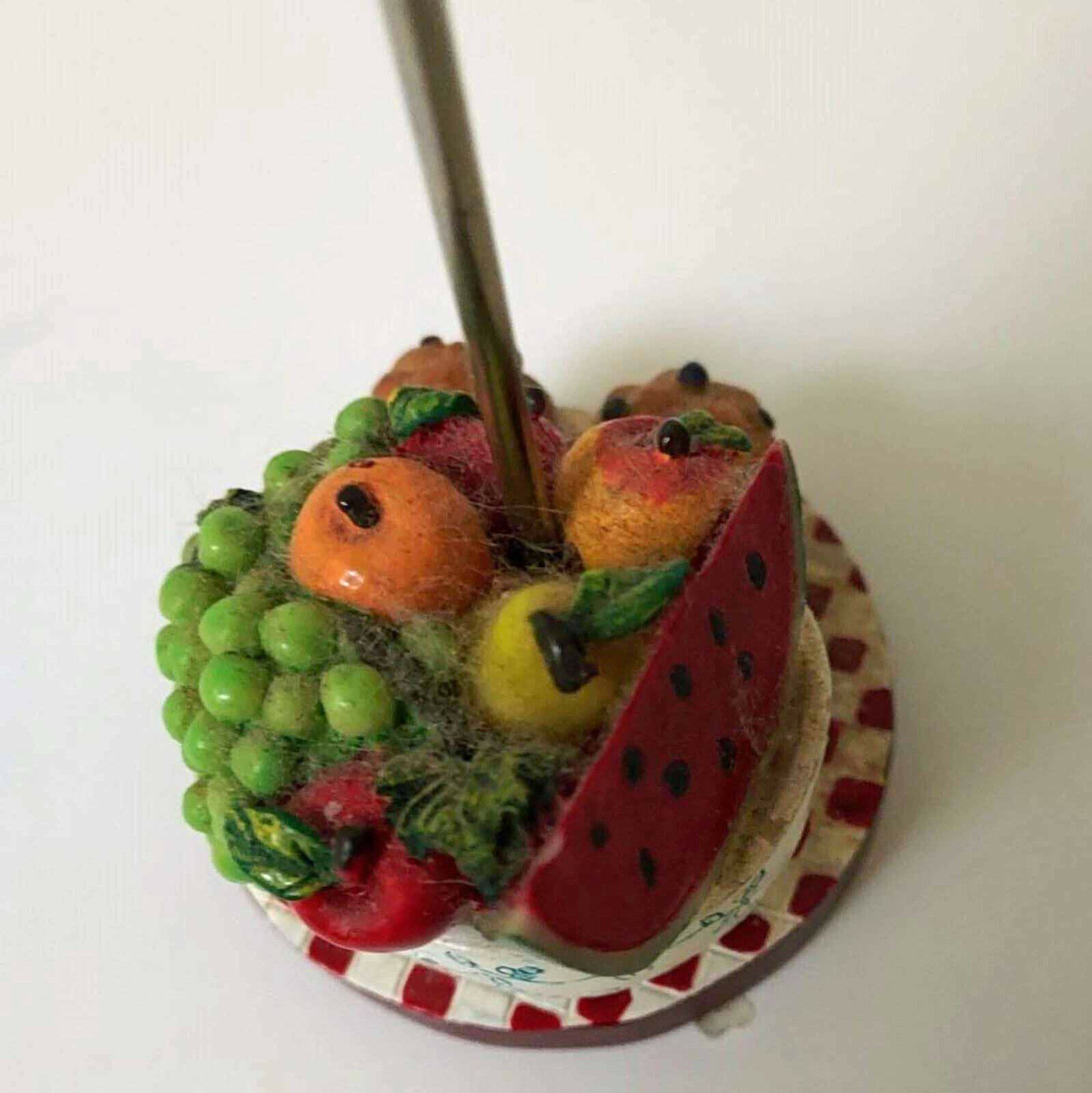 The bowl of fruit with muffins measures 8 inches tall to top of holder and 2.5 inches across. This 3 dimensional piece has a lot of texture and detail