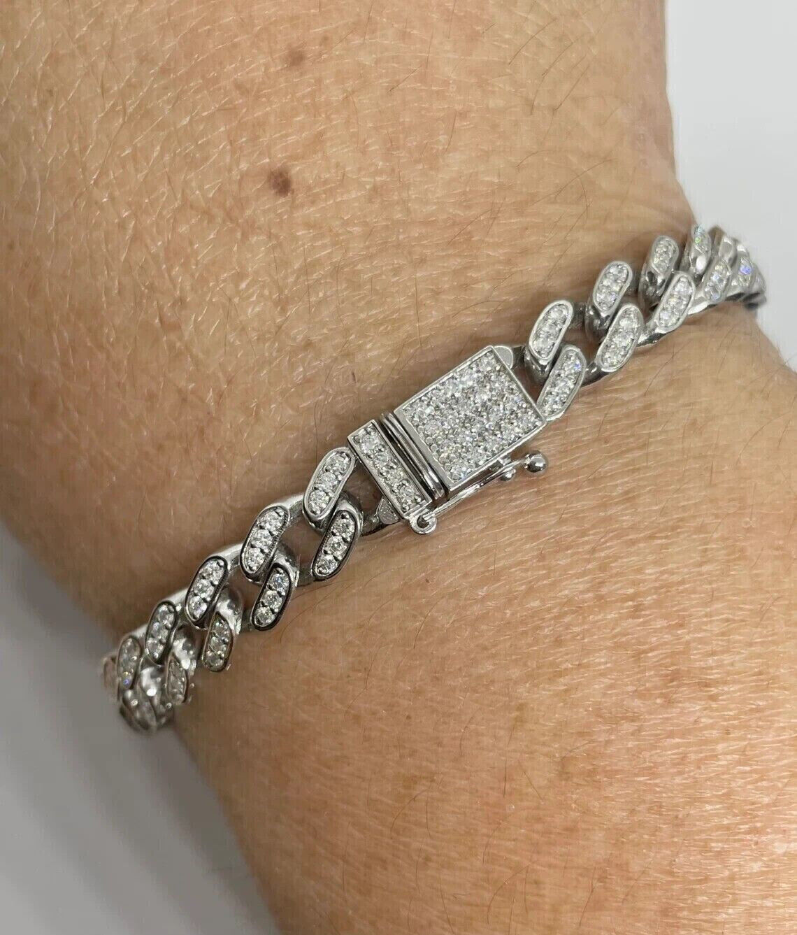 5CT Round Simulated Moissanite Cuban Link Chain Bracelet 14K White Gold Plated
