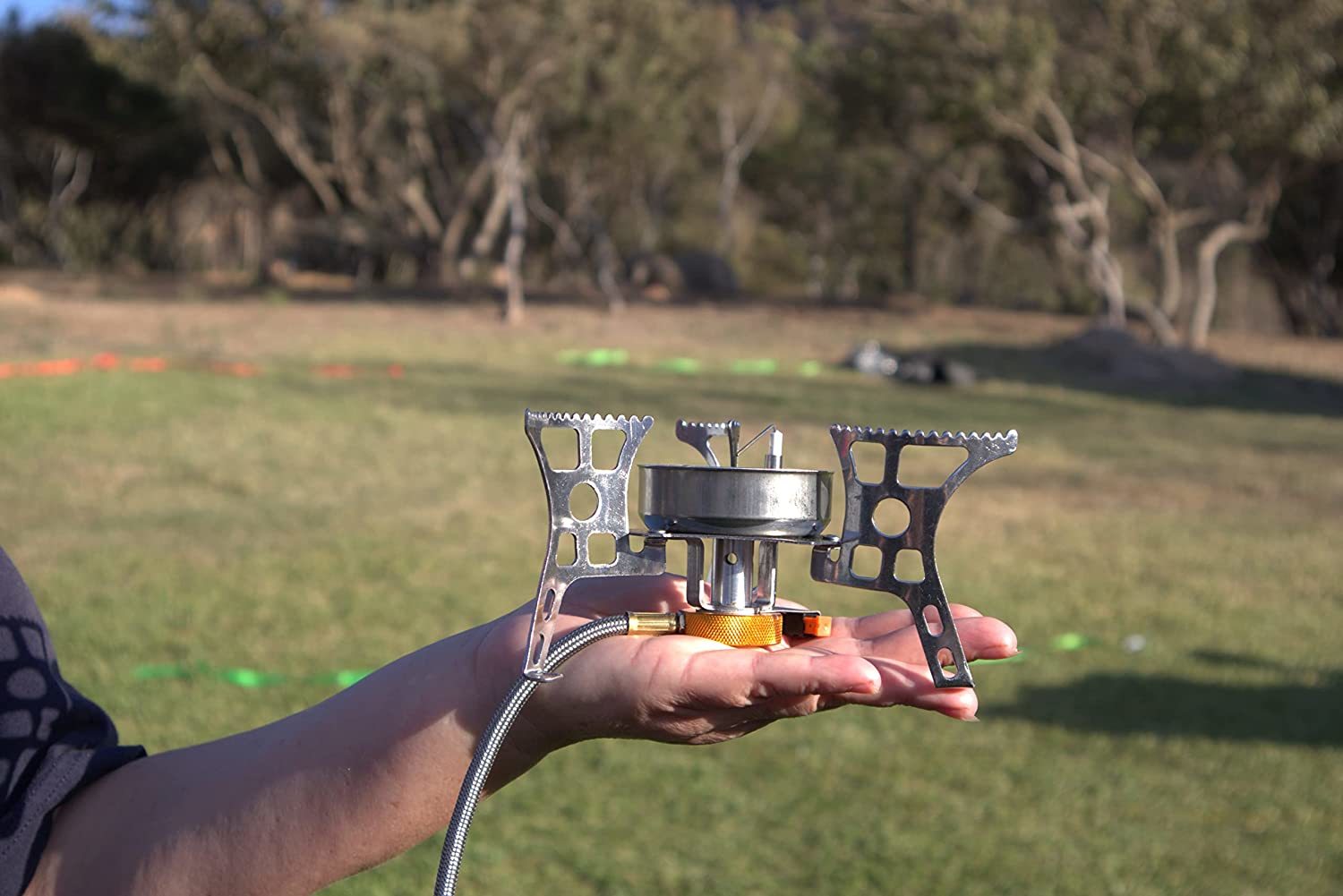 Collapsible and Portable Stove - Small, ultra light weight stove that fits very easy in your backpack; The small carry case creates an easy transport; This backpacking camp stove is very simple to set-up when ready to cook your food or liquids quickly. Camping Stove for Outdoor Cooking to take for short backpacking trips, Fishing, or anywhere you want. Very convenient and easy to work with the appropriate adapters. No Lighter/matches? No problem. The backpacking stove comes with an electronic ignition system that make it easier to ignite. (Note: If it isn't ignited on first press, then press the ignition switch a few times ) Windproof and Honeycomb Mesh Design - The integrated design of the wind shield can effectively improve the thermal efficiency of the small camp stove. This solves the problem commonly seen by backpackers on windy days. Controllable Flame - This small camping stove has an adjustable flame regulator for fast maximum heat output. It reaches 3900 watts firepower to boil water in a short time (brought 2 cups of water to boiling in 3 minutes at about medium heat level) quickly and efficiently. We are dedicated to provide high quality products for your backpacking experience and provide great customer care and support to you. Enjoy cooking outdoors when camping, hiking, with friends and family!