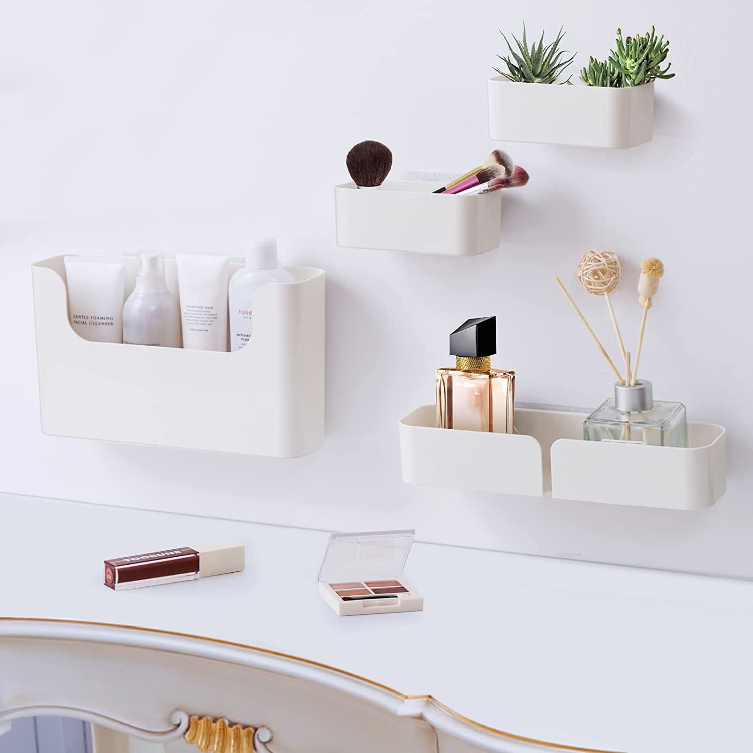 Brief Home Bathroom decor - This wall adhesive shelf can also be a stunning addition of your home, its simple yet attractive design matches perfectly any home style. Space Saver - Transforms the wasted space on the wall into a spacious storage area, this wall floating shelf helps you to keep everything neatly organized within arms reach. Easy to Install - Come with strong adhesive plates, easy and quick installation, damage-free to your smooth wall. It also comes with screws, can install on uneven wall. Material - Made from High Impact ABS that are durable and can withstand 5 Lb. Multipurpose - Ideal for bathroom, kitchen, bedroom, power room, work great as a bathroom storage shelf, shower caddy, makeup vanity, kitchen organizer, display shelf.