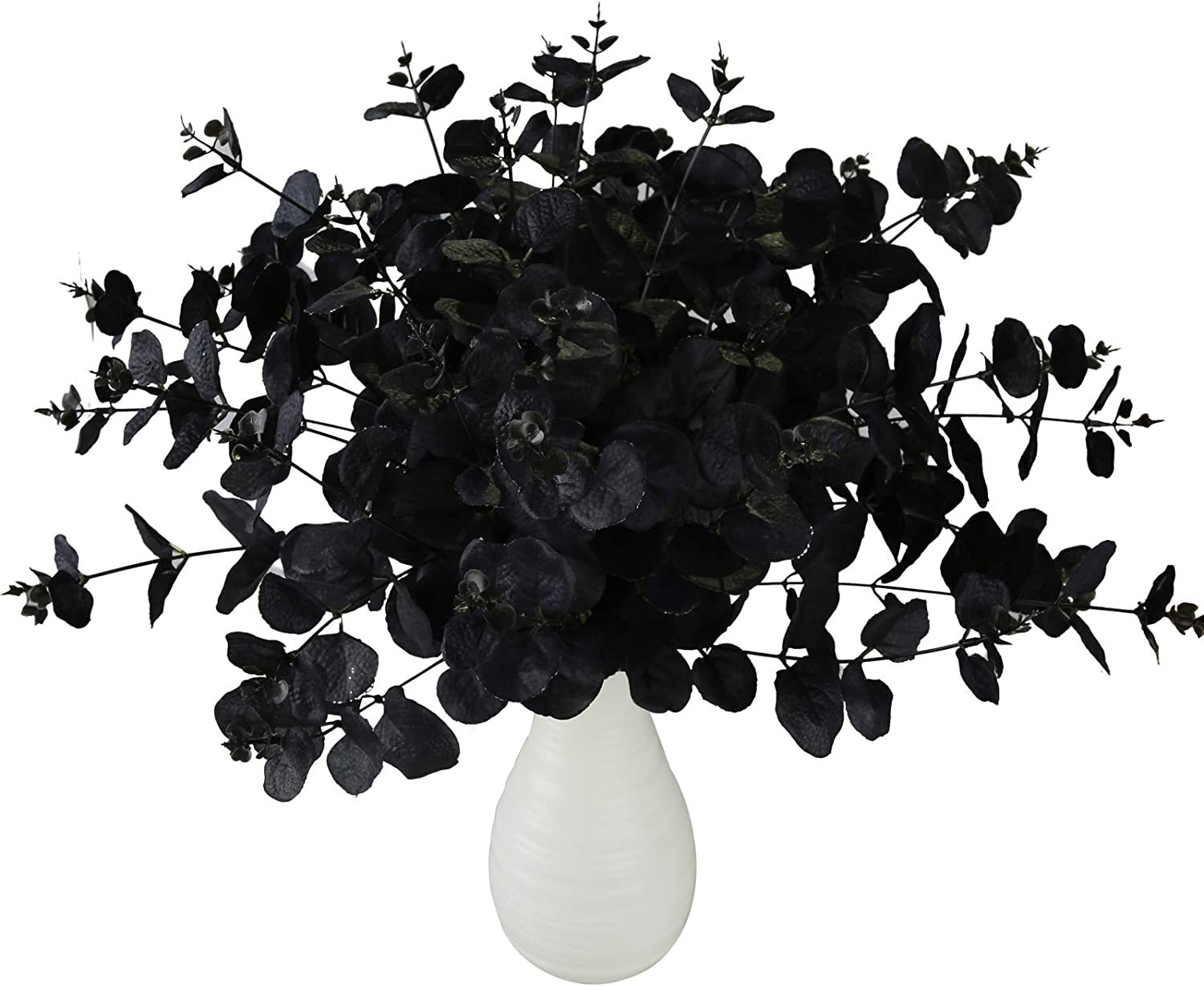 Greentime 2 Pack Black Fake Flowers Artificial Eucalyptus Stems Bouquet With 20