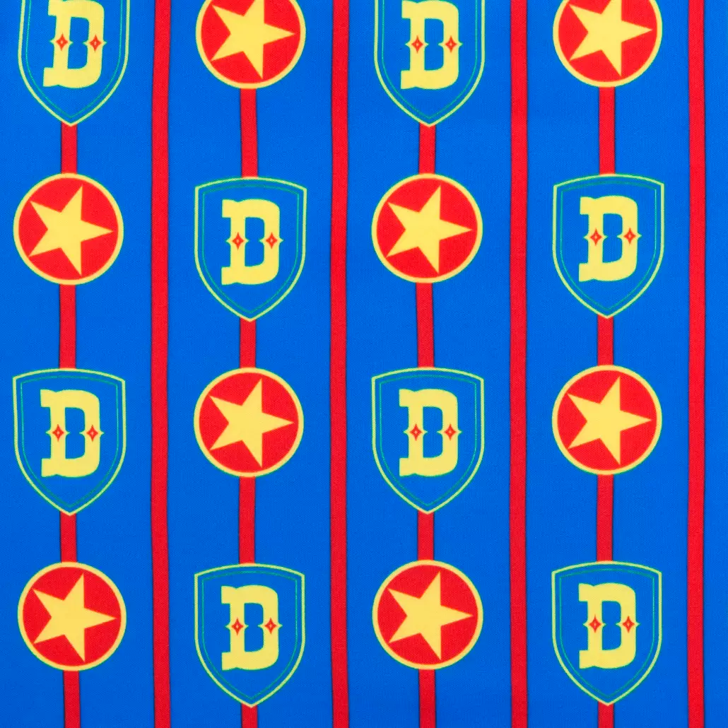 beloved Walt Disney World Resort attractions, this colorful bag, with its blue and red metallic simulated leather design, is inspired by Dumbo The Flying Elephant.