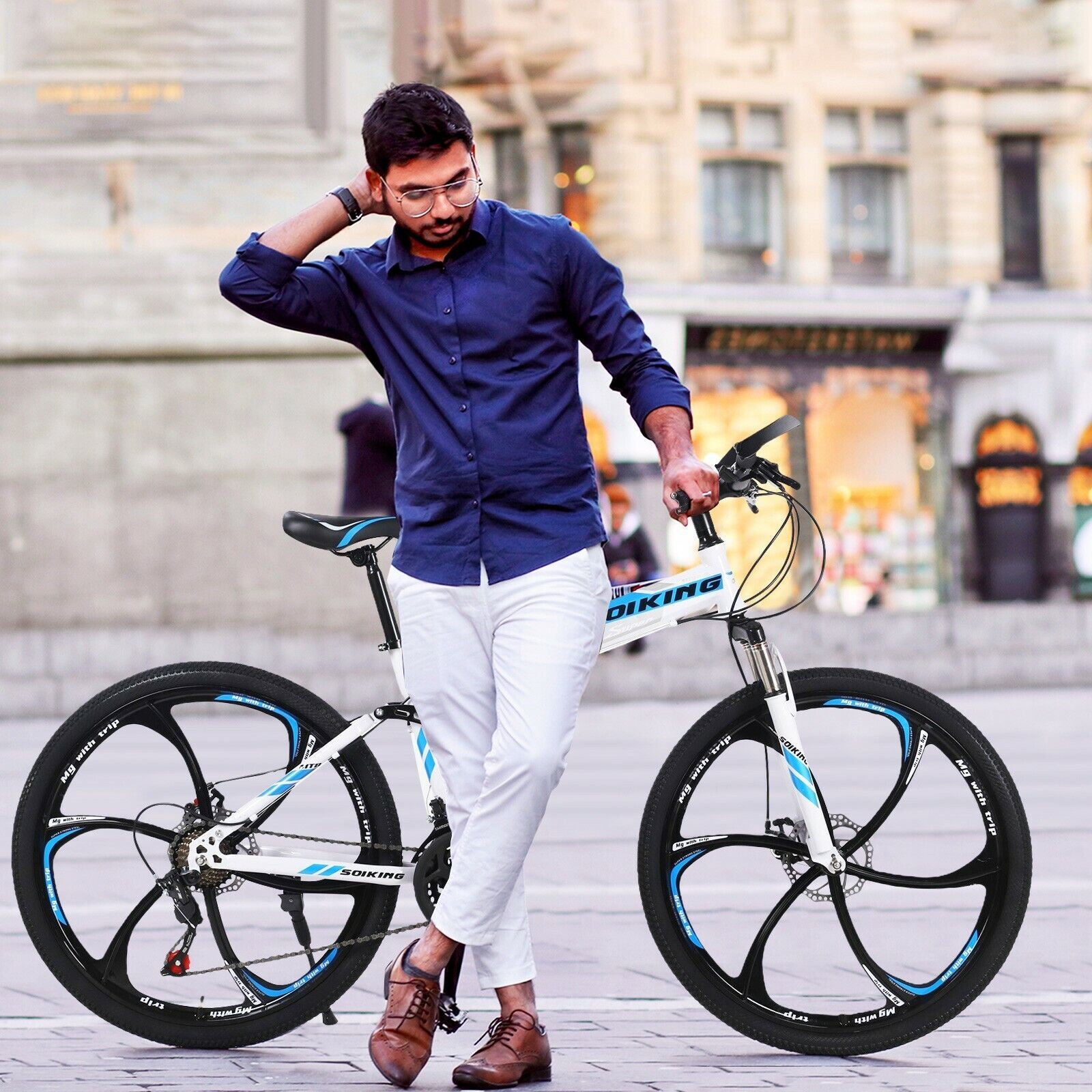 26in Folding Mountain Bike Shimanos 21 Speed Bicycle Full Suspension MTB Bikes