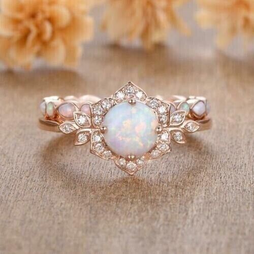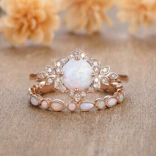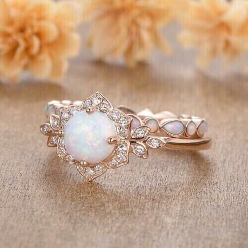 4Ct Round Cut Simulated Fire Opal Bridal set and similar items