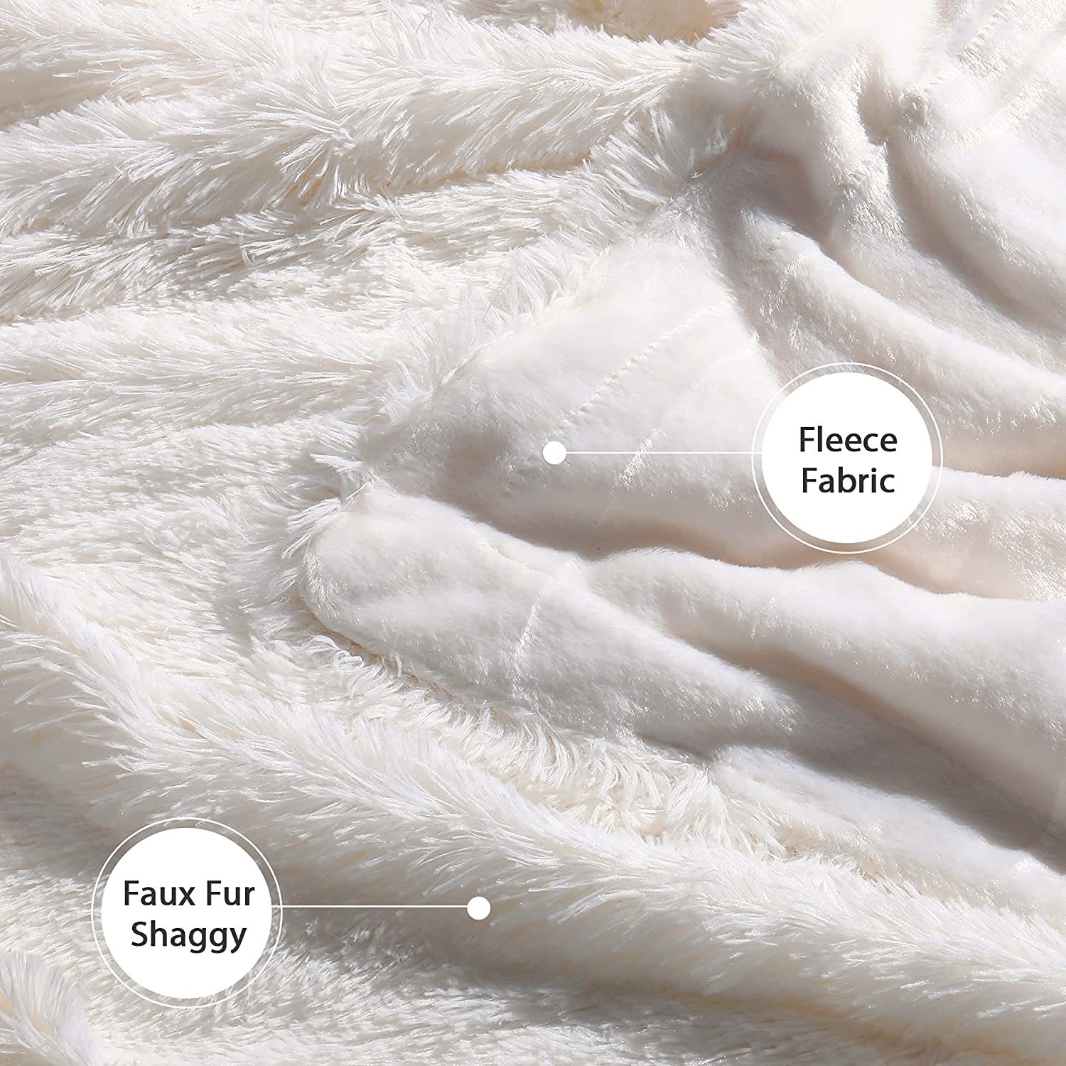 Fluffy Cozy Plush Fleece Comfy Microfiber Blanket For Couch Sofa Bed, Cream