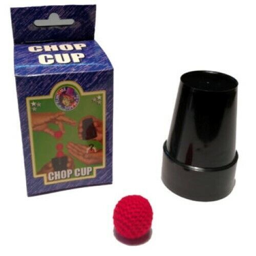Make balls appear and vanish with this amazing Chop Cup! The magical cup is small, plastic and lightweight, great for those just starting out in magic. Includes the black plastic Chop Cup, two knit balls and colorful instructions.
